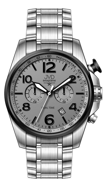 Kvalitní pánské hodinky JVD Seaplane z nerezové oceli mají dva menší 24hodinové číselníky s funkcí Dual Time a s možností zaznamenávat dva světové časy současně.