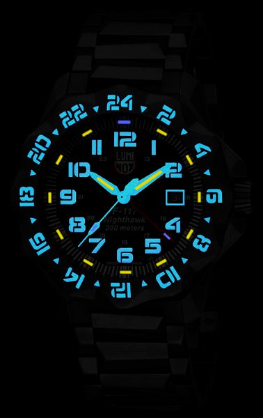 • Funkce a popis:Čas, datum, režim 12/24, svítící ručky a indexy, osvětlení číselníku Luminox Light Technology, jednosměrně otočná luneta, šroubovací kournka
