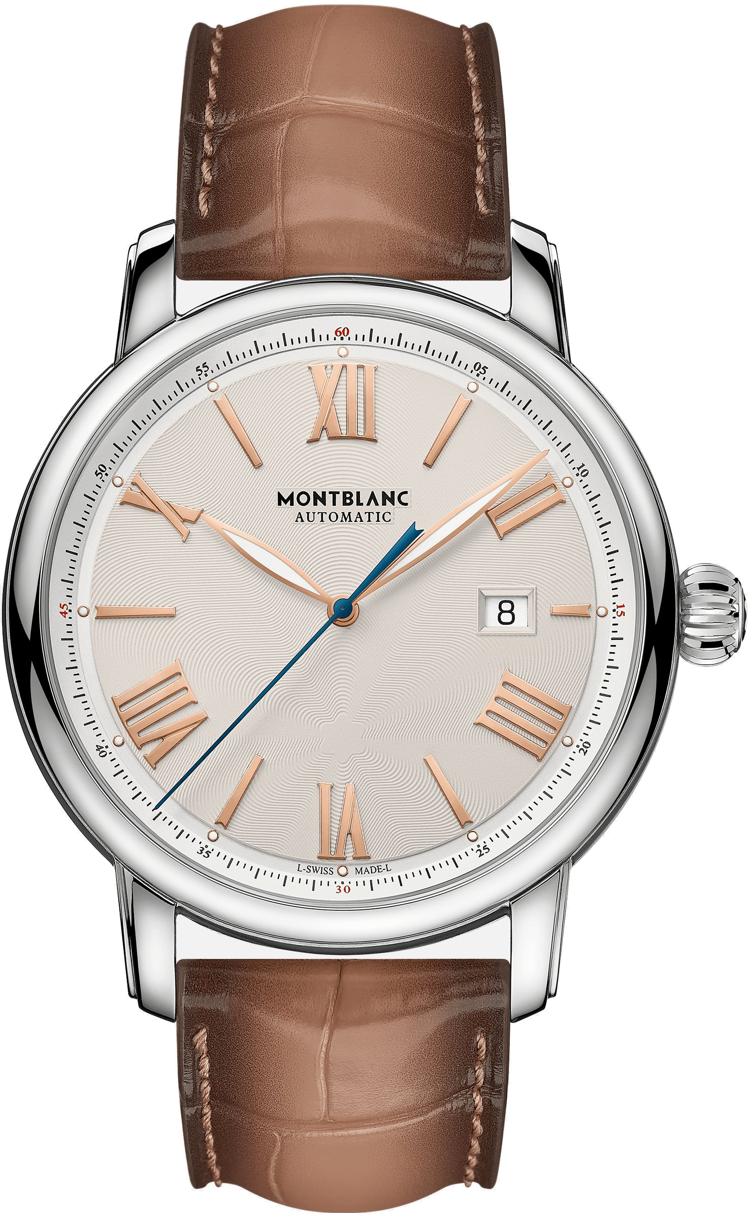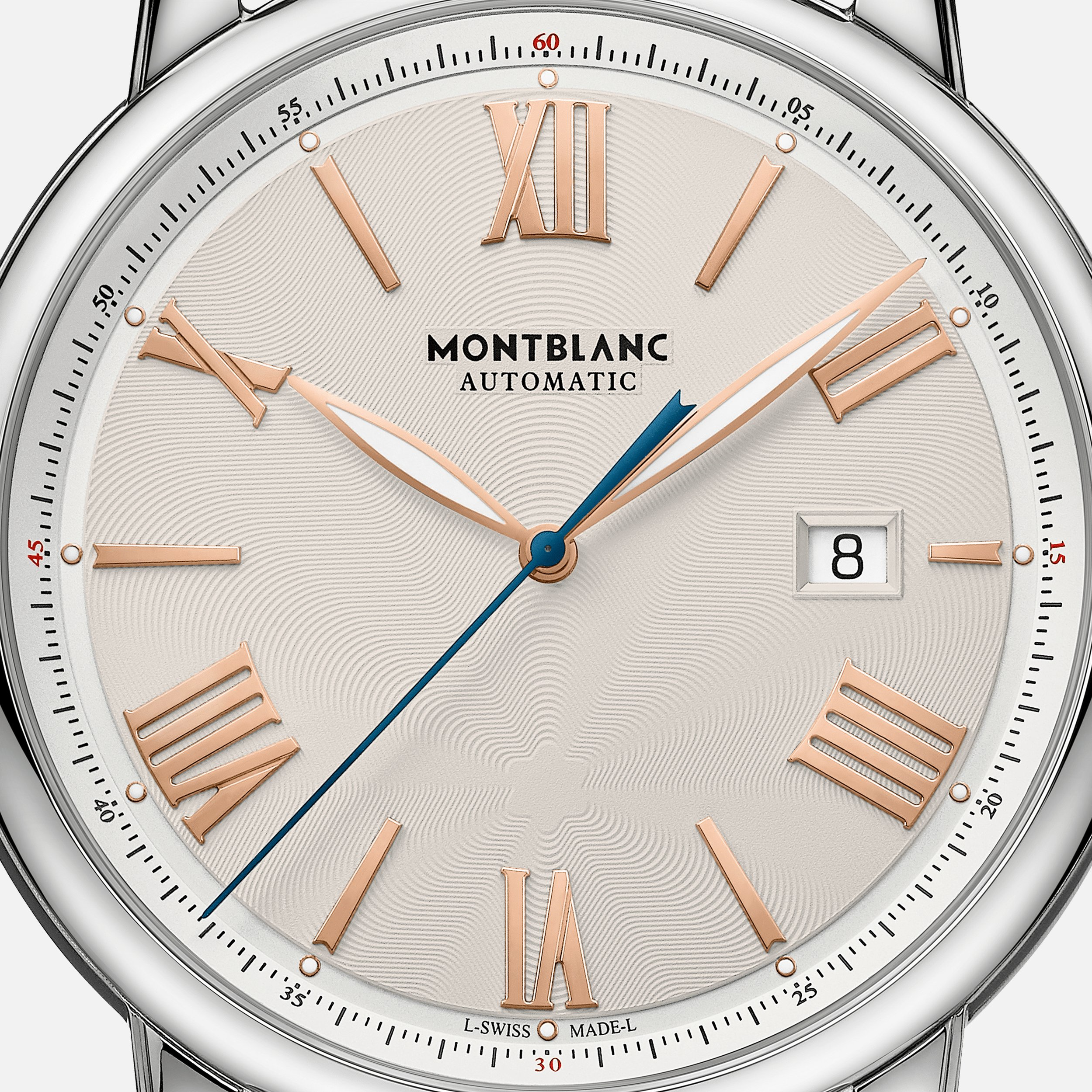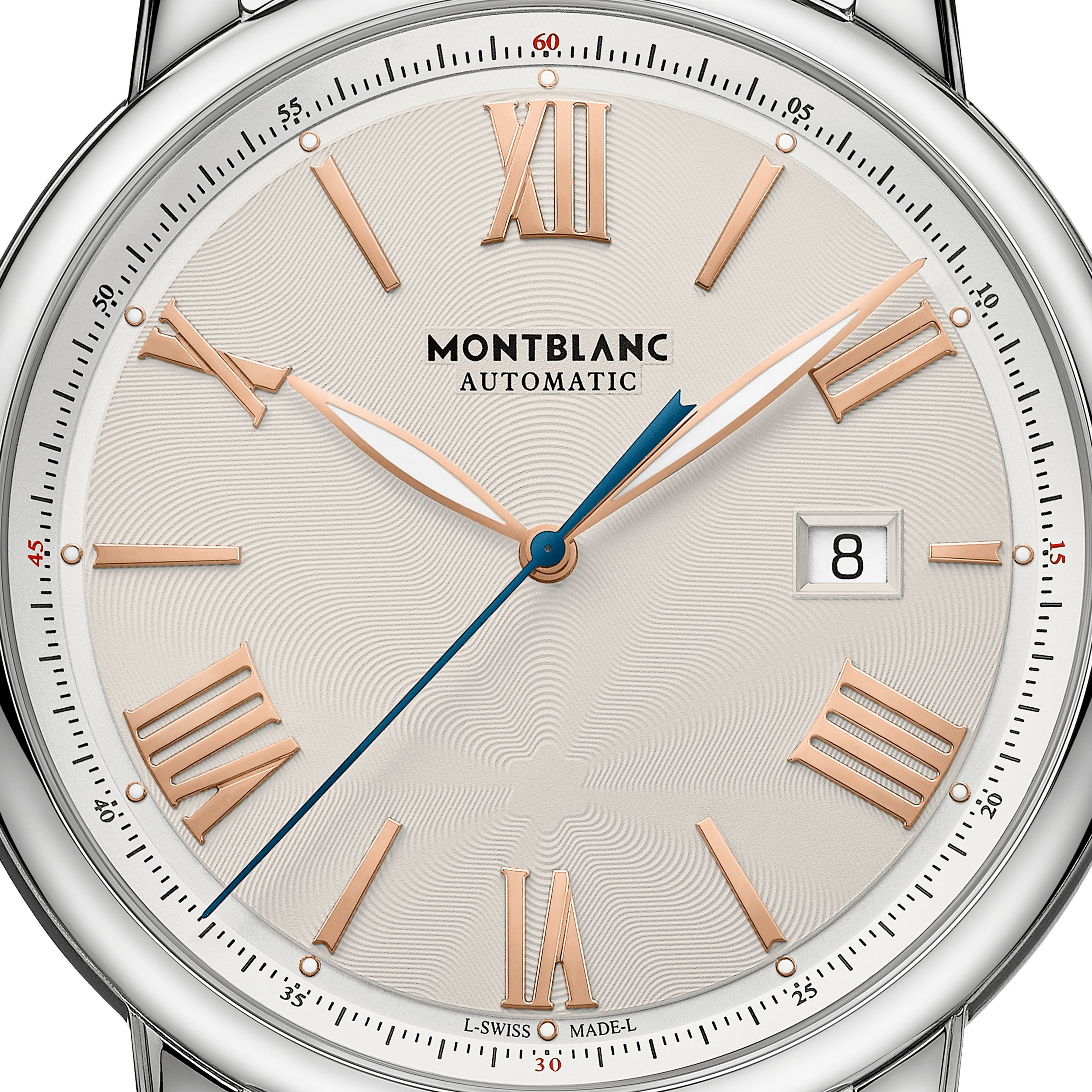 Produktová řada Montblanc Star Legacy je inspirována staršími a kapesními hodinkami Minervy vyrobenými na konci 19. a na počátku 20. století. Montblanc Star Legacy Automatic Date nabízí užitečné displeje a kromě stylového a stejně neformálního vzhledu se vyznačuje klasickým hodinářstvím. Jeho pouzdro z nerezové oceli o průměru 43 mm zahrnuje číselník ve slonovinové barvě s 18K růžovými pozlacenými římskými číslicemi, indexy a ručičky s luminiscenční vrstvou.
