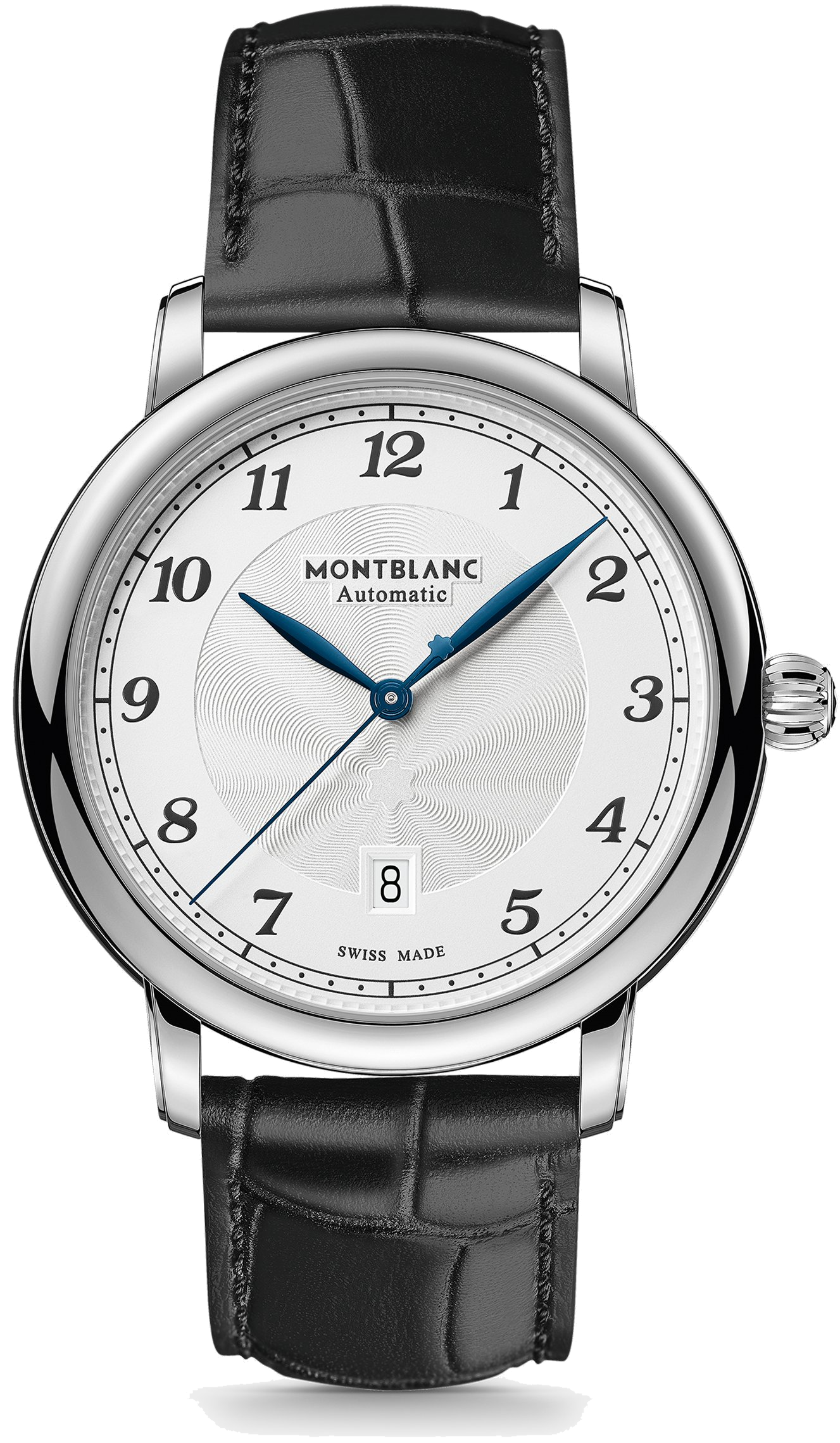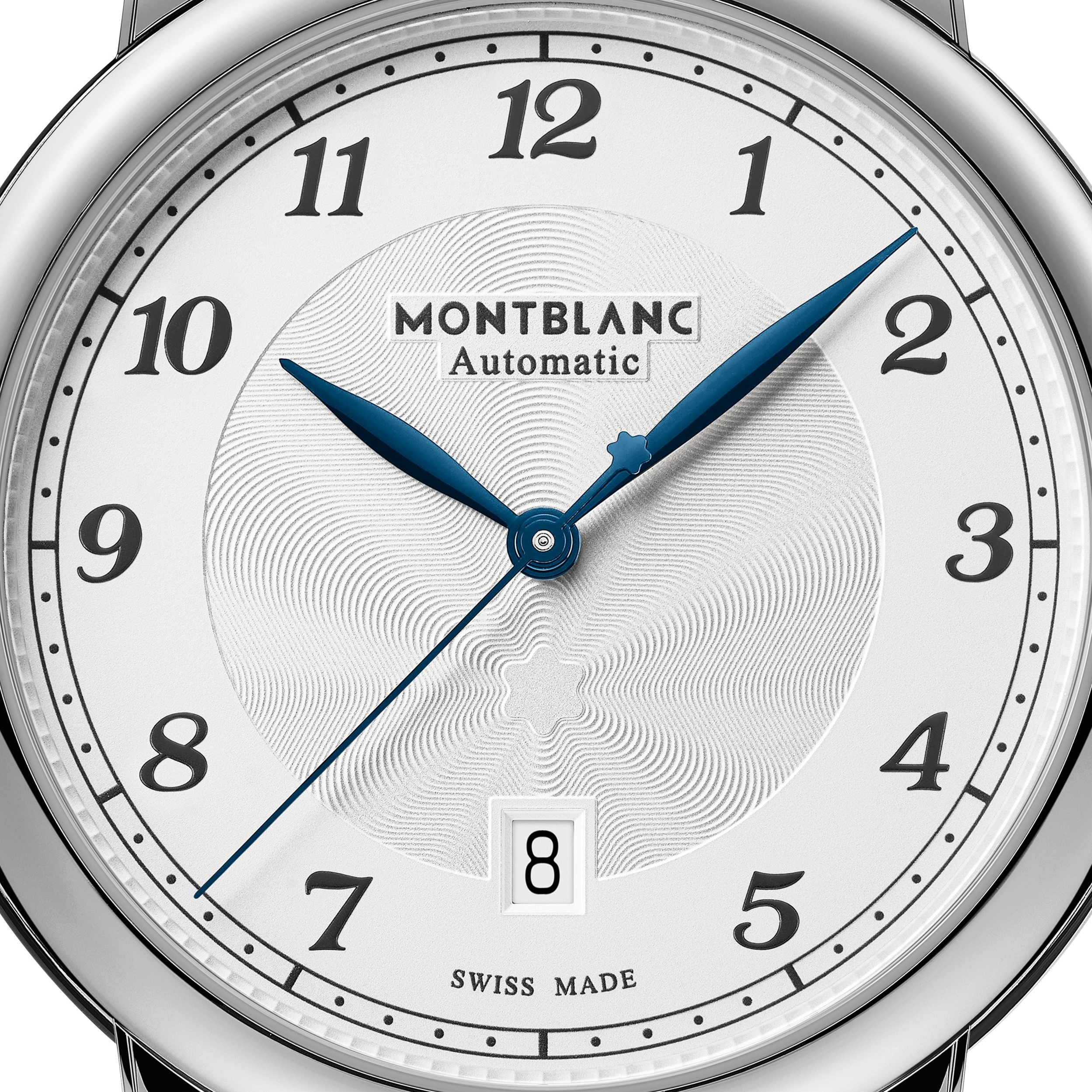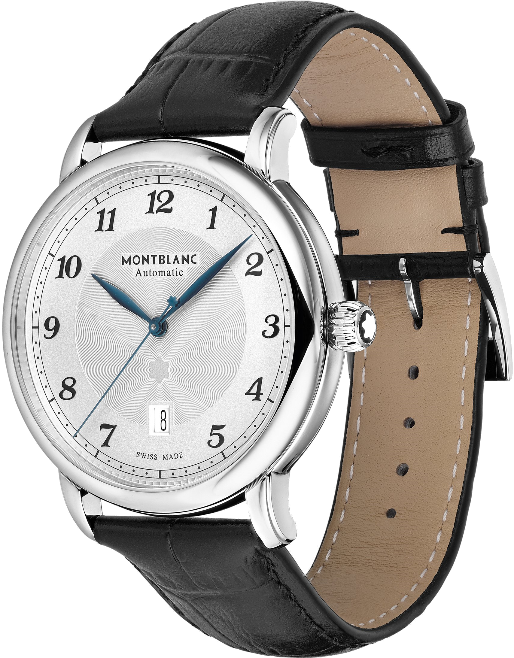 • Funkce a popis:Čas, datum, strojek Swiss Montblanc MB 24.17 (základ Sellita SW 200-1) = rezerva chodu 38 hodin, krokové ústrojí ocel/kámen, polokmity setrvačky 28.800/h (4 Hz) = přesnost chodu (diference) 2 - 4 vteřiny denně, 26 kamenů, automatický nátah (hodinky se natahují pohybem ruky) + ruční nátah (hodinky lze natáhnout/dotáhnout dle potřeby i ručně korunkou), rotor samonátahu disponuje funkcí oboustranného nátahu, číselník má krásný jemný rastr v podobě paprskovitých vln směrem od loga Montblanc (tento paprskovitý rastr vytváří při různých úhlech náklonu hodinek při nošení rozmanité tóny odstínu číselníku)