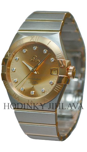 • Funkce a popis:Čas, datum, strojek swiss Omega cal. 8500 (39 kamenů) Chronometer (certifikát COSC) Co-Axiál (stejnoměrný chod strojku) - kmity setrvačky 28.800/h = přesnost chodu 0 - 3 vteřiny / den, rezerva chodu 60 hodin, číselník je osázen brilianty (certifikát o váze) a je efektní paprskovitý, luneta a mezičlánky náramku je 18 karátové zlato
