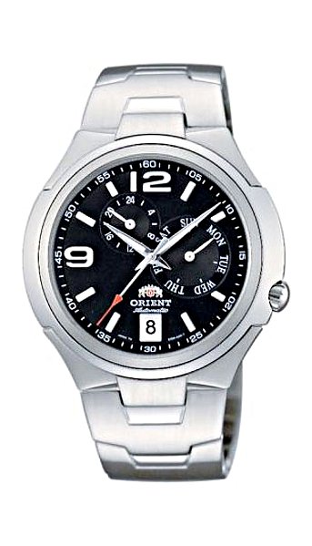 • Funkce a popis:Čas, datum, strojek japan Orient - rezerva chodu 38 hodin, kmity setrvačky 21.600/h = diference 7 - 10 vteřin denně, luminiscenční ručičky a indexy