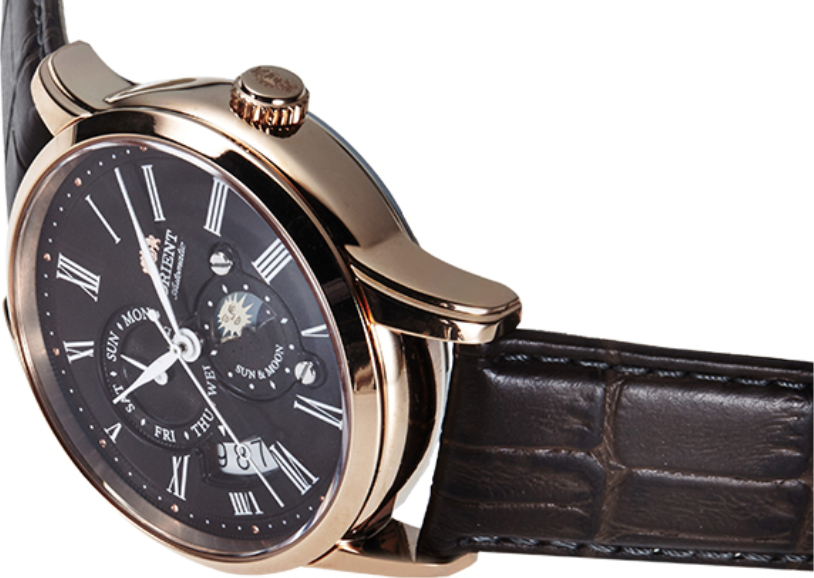 • Funkce a popis:Čas, datum, den v týdnu, strojek automat Japan Orient Cal.46D40 (21 kamenových uložení), rezerva chodu 40 hodin, 21.600 polokmitů setrvačky za hodinu = přesnost chodu -7 - +17 vteřin denně (obvykle však -2 - +10 vteřin denně), ukazatel dne a noci, šroubovací průhledné zadní víčko