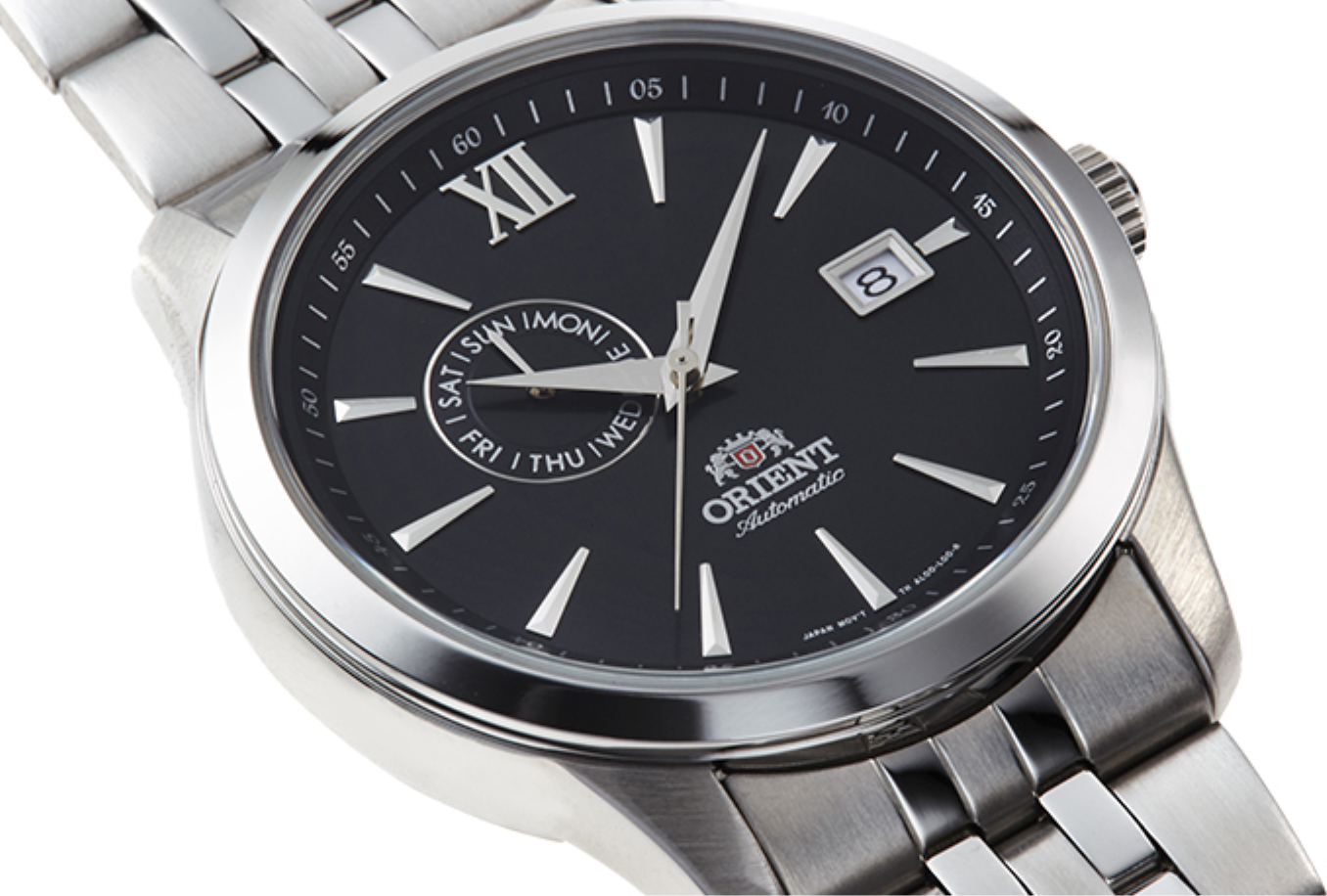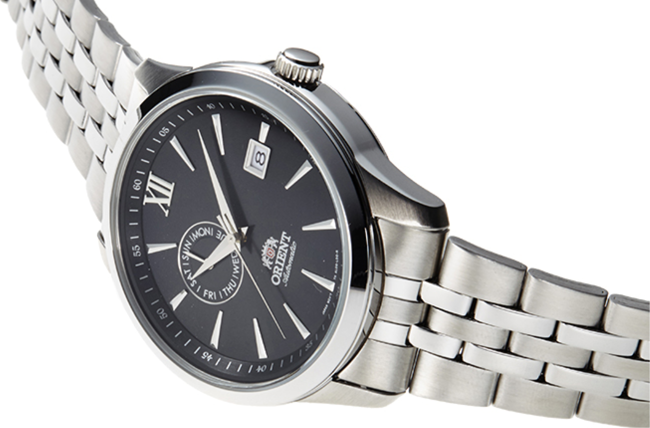 • Funkce a popis:Čas, datum, den v týdnu, strojek automat Japan Orient Cal. F7R62 (22 kamenových uložení), rezerva chodu 40 hodin, 21.600 polokmitů setrvačky za hodinu = přesnost chodu -2 - +12 vteřin denně (obvykle však +4 - +8 vteřin denně), automatický nátah (pohyb ruky) + ruční nátah (hodinky lze také natahovat i korunkou)