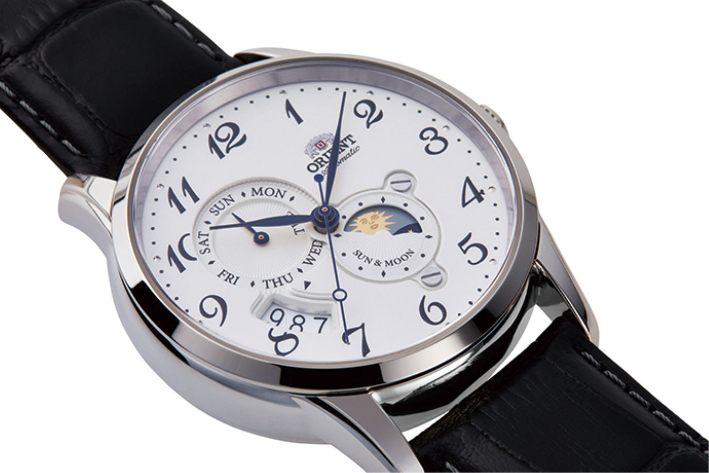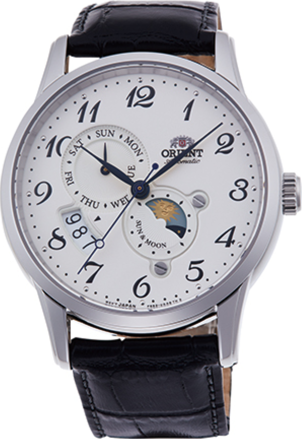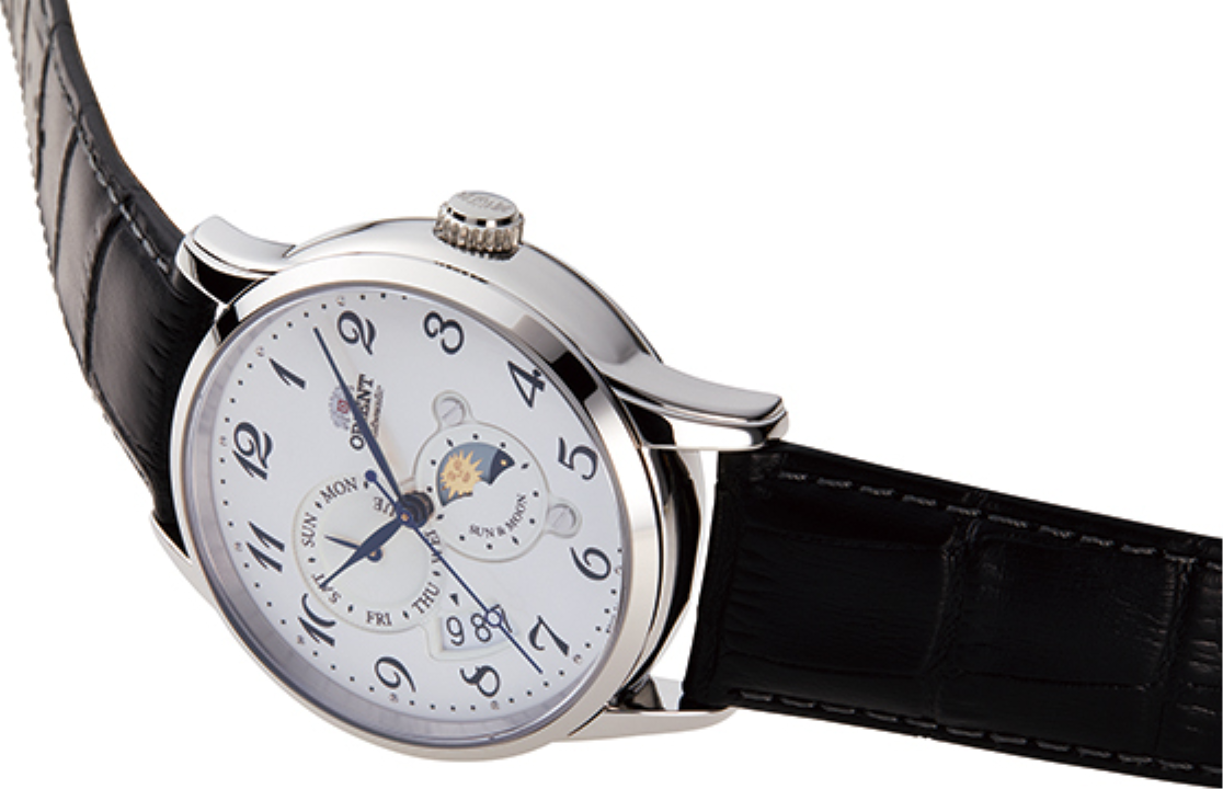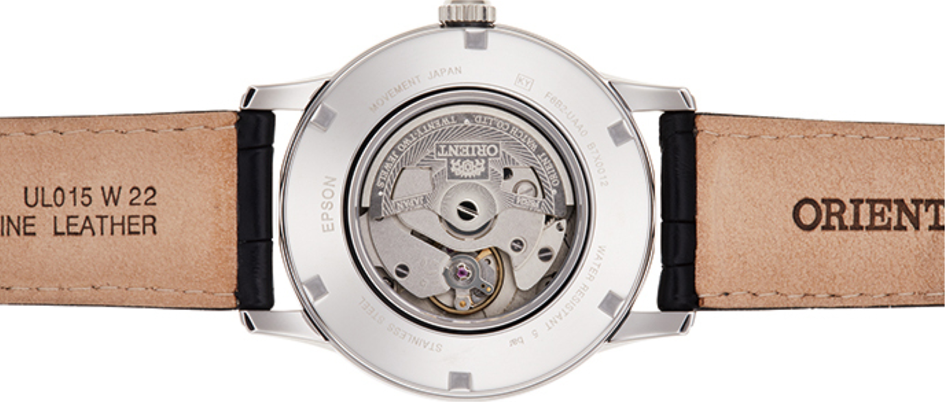 • Funkce a popis:Čas, datum, den v týdnu, strojek automat Japan Orient Cal.F6B24 Made in Japan (21 kamenových uložení), rezerva chodu 40 hodin, 21.600 polokmitů setrvačky za hodinu = přesnost chodu -7 - +17 vteřin denně, ukazatel dne a noci, šroubovací průhledné zadní víčko