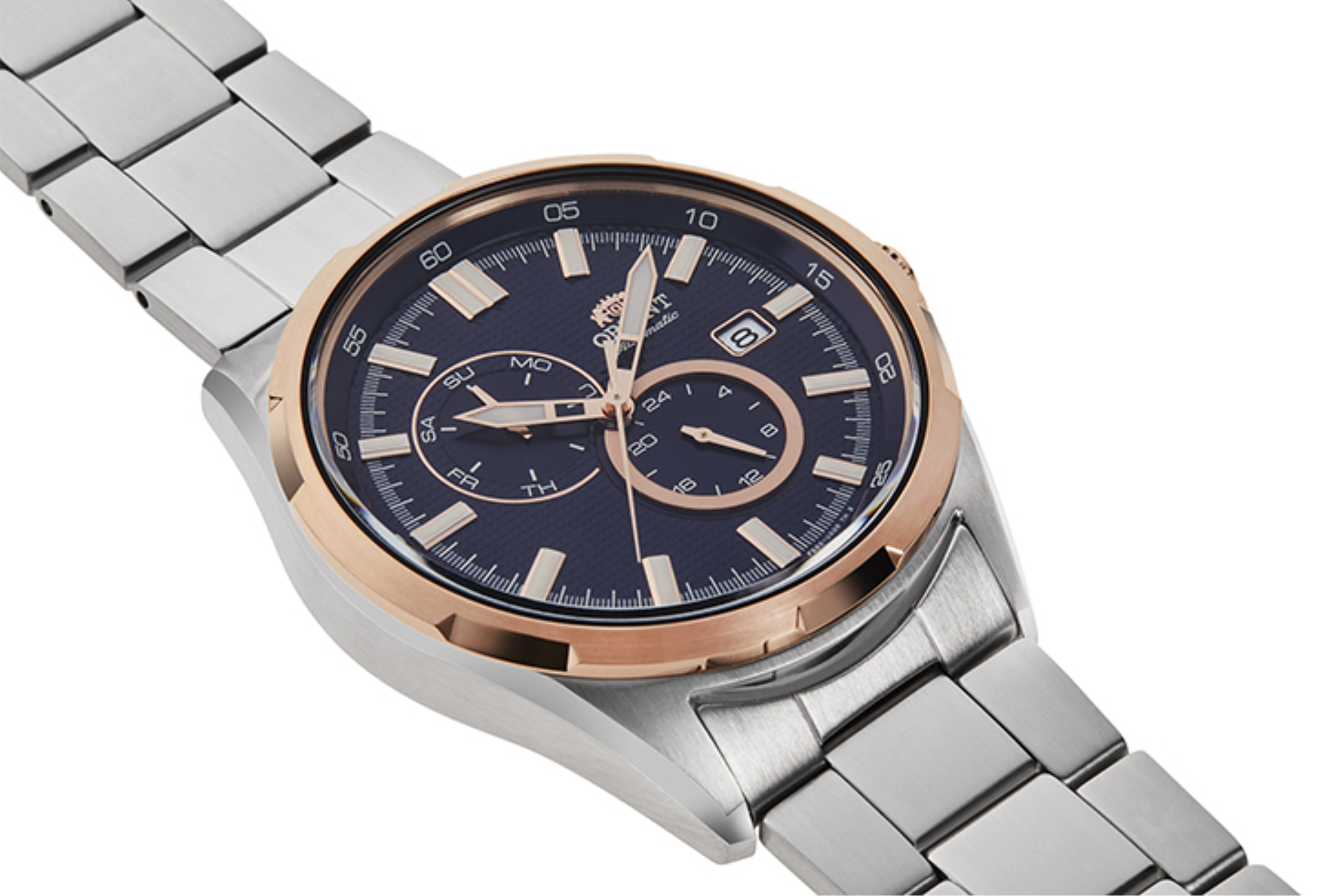 • Funkce a popis:Čas, datum, den v týdnu, strojek automat Japan Orient Cal.F6B24 Made in Japan (21 kamenových uložení), rezerva chodu 40 hodin, 21.600 polokmitů setrvačky za hodinu = přesnost chodu -7 - +17 vteřin denně, šroubovací zadní víčko