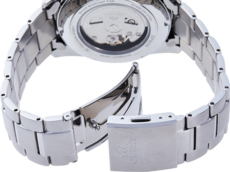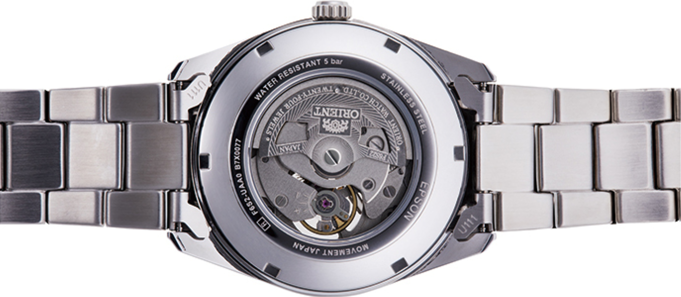 • Funkce a popis:Čas, mimostředná vteřinová ručka, strojek automat Japan Orient Cal. F7R62 (22 kamenových uložení), rezerva chodu 40 hodin, 21.600 polokmitů setrvačky za hodinu = přesnost chodu -7 - +17 vteřin denně, automatický nátah (pohyb ruky)