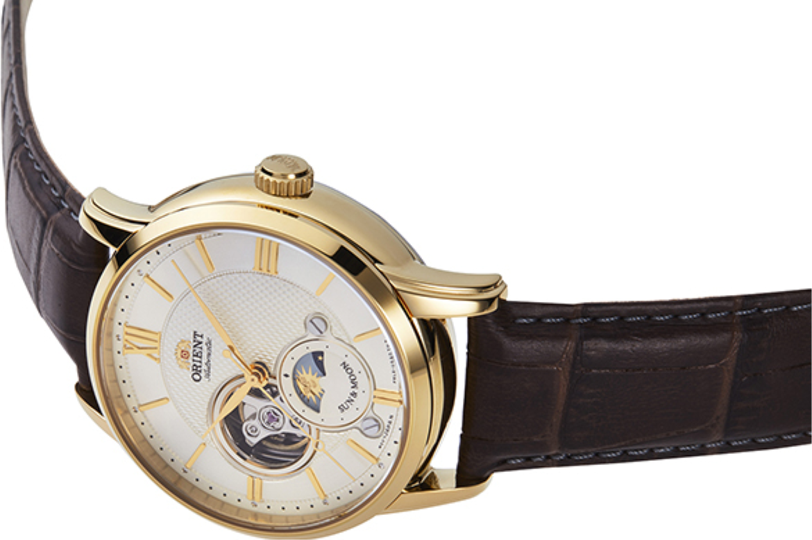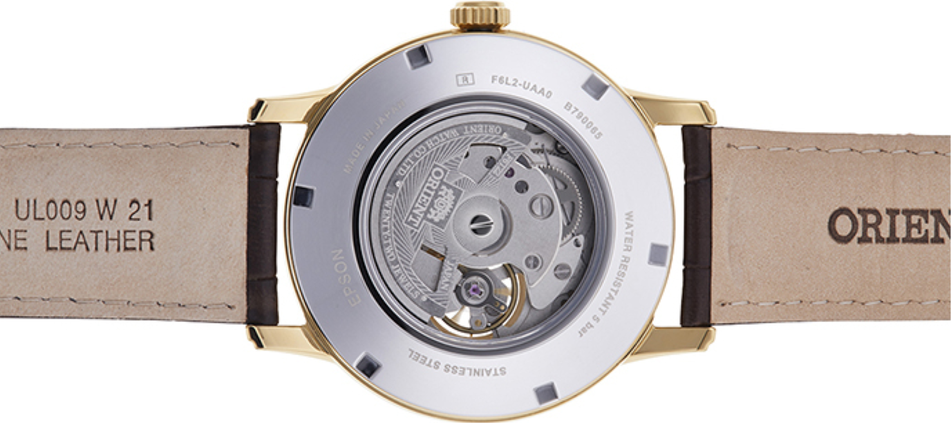 • Funkce a popis:Čas, strojek automat Japan Orient Cal.F6B24 Made in Japan (21 kamenových uložení), rezerva chodu 40 hodin, 21.600 polokmitů setrvačky za hodinu = přesnost chodu -7 - +17 vteřin denně, ukazatel dne a noci, šroubovací průhledné zadní víčko