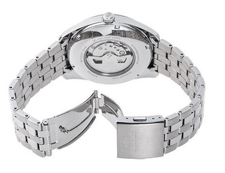 • Funkce a popis:Čas, datum, nekonečný kalendář, strojek vlastní výroby Orient F6D22 s 21 kameny a frekvencí chodu 21 600 polokmitů za hodinu, možností ručního nátahu a funkcí hackingu (zastavení vteřinovky při nařizování času), náhled na strojek skrz zadní víčko