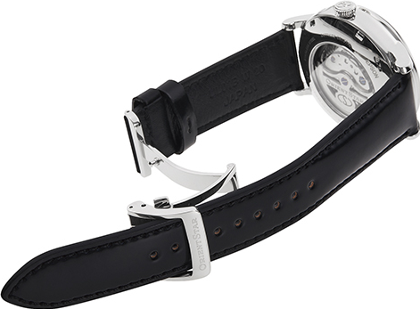 • Funkce a popis:Čas, průhled na setrvačku strojku na pozici 9. hodiny tzv. "open heart" a datumovka s měsíční fází, strojek japan Orient cal.F7M62 - rezerva chodu 50 hodin, kmity setrvačky 21.600/h = diference 4 - 17 vteřin denně, zastavení sekundové ručky při nařizování hodinek (tzv. hacking)