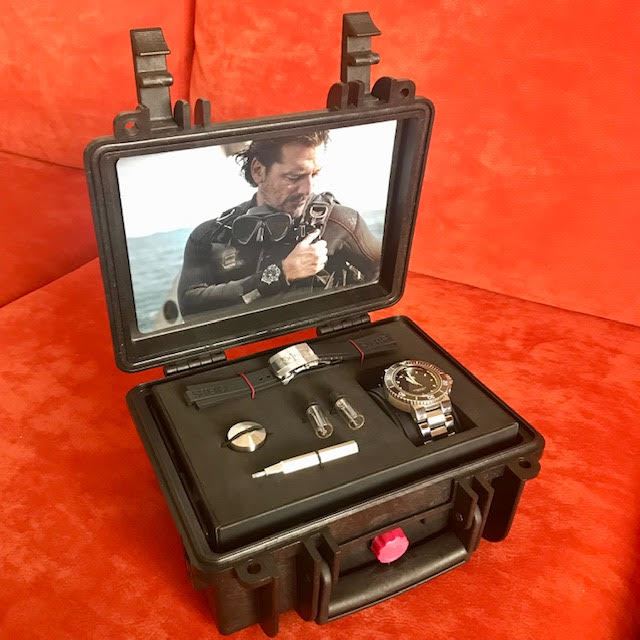 je poté vidět na hodinkách i za hluboké tmy na první pohled.Šroubovací korunka zajišťuje pouzdru dokonalé utěsnění proti tlaku vody a mikro-