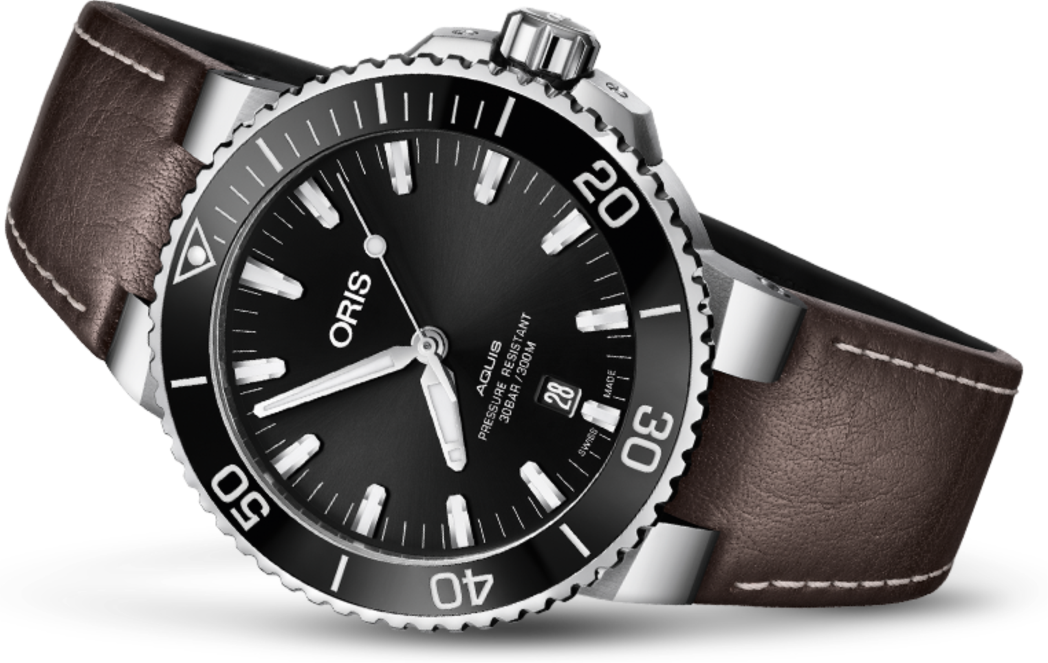 verze oceli třídy 316.Čitelnost je pro hodinky značky Oris prioritou. Proto nanáší na většinu ručiček a
