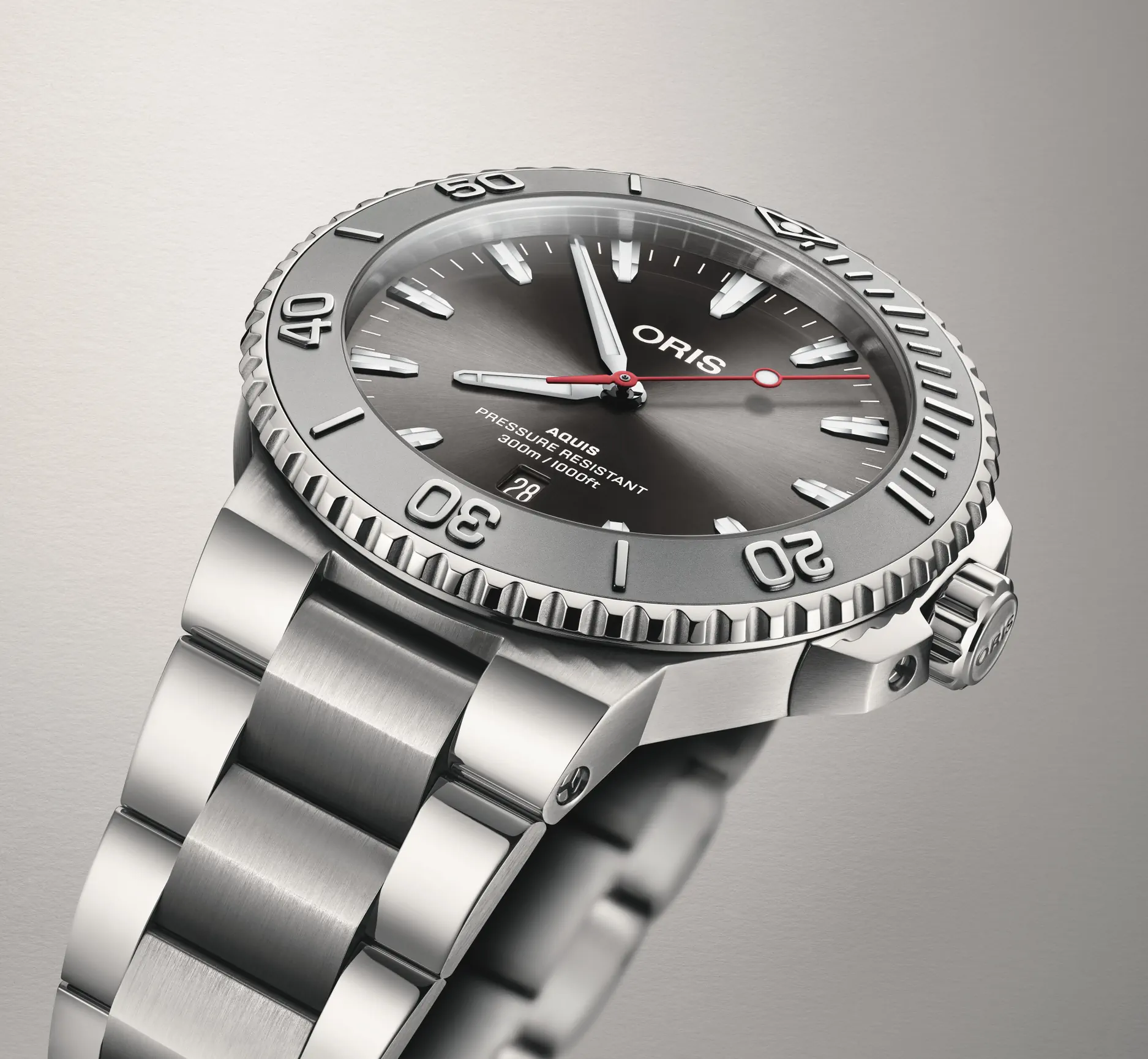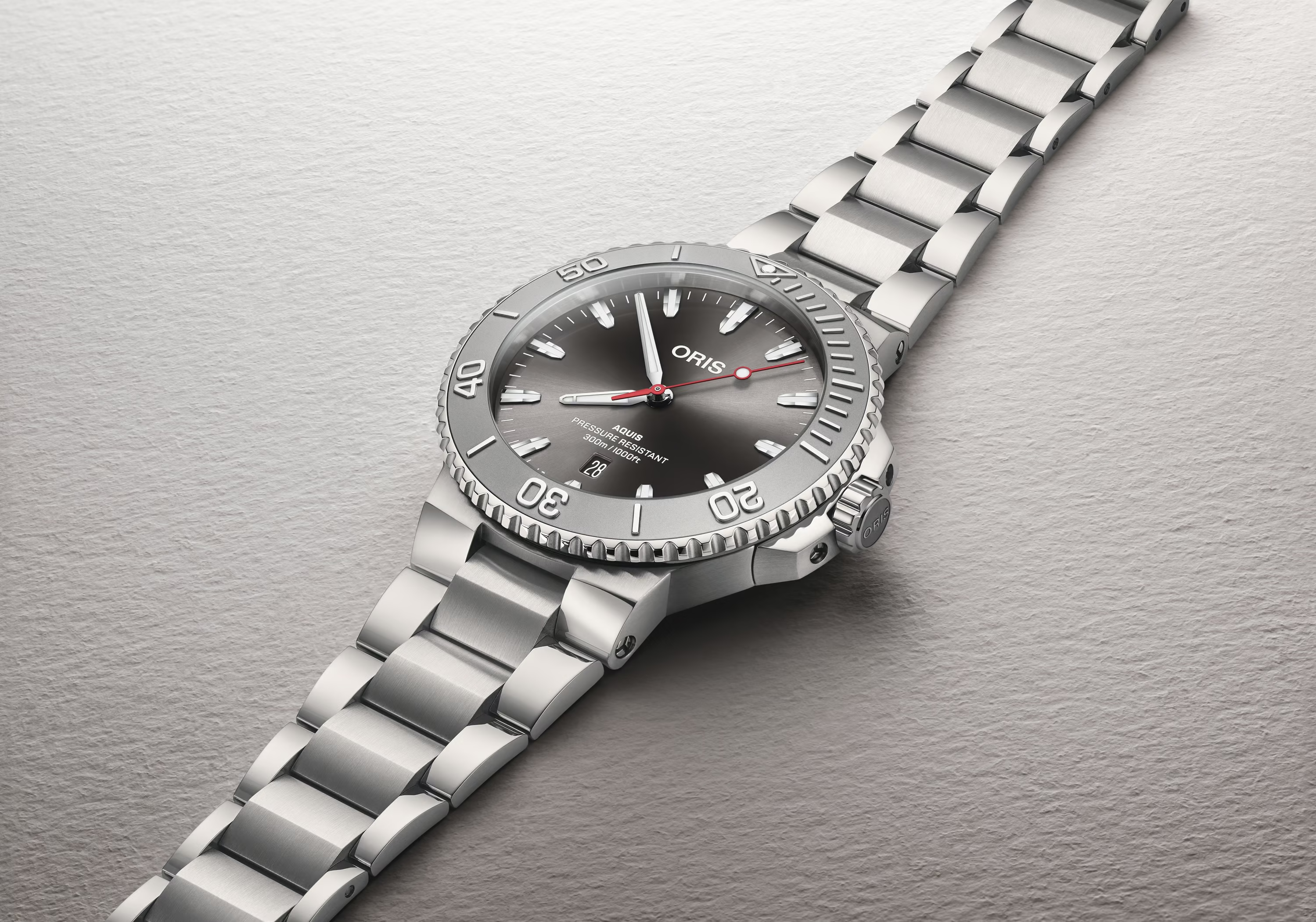 verze oceli třídy 316.Čitelnost je pro hodinky značky Oris prioritou. Proto nanáší na většinu ručiček a