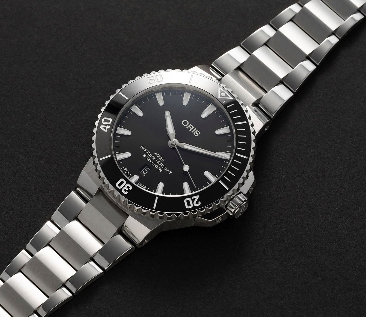 verze oceli třídy 316.Čitelnost je pro hodinky značky Oris prioritou. Proto nanáší na většinu ručiček a