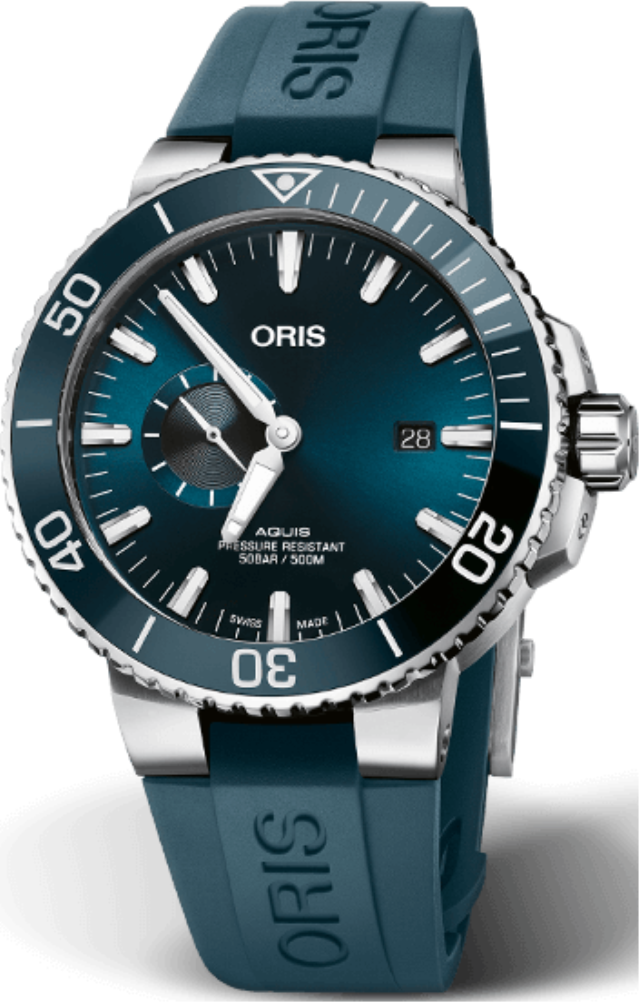 Kolekce potápěčských hodinek Aquis nabízí praktické funkce pro reálný svět v inovativním balení, a to kombinací sportovněelegantního designu, vysoce výkonných materiálů a funkcí vhodných pro denní nošení i pro potápění do velkých loubek. Výsledkem rozsáhlého výzkumu a kolaborativního myšlení je, že Oris Aquis je plně funkční řada hodinek, která nedělá kompromisy ve stylu a je jako doma v městském ruchu i hluboko pod vlnami.