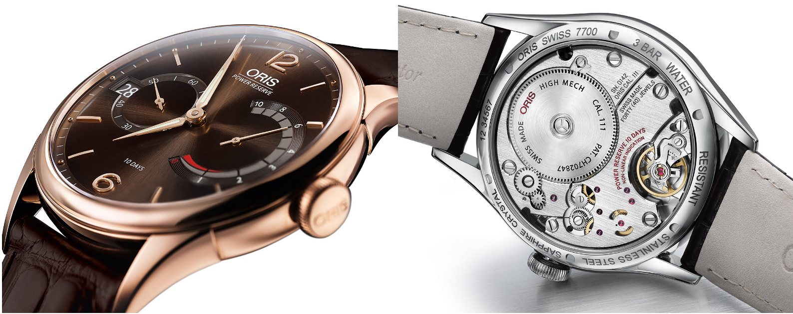 Mechanický strojek Oris Calibre 111 disponuje s úžasnou rezervou chodu 10 dní.