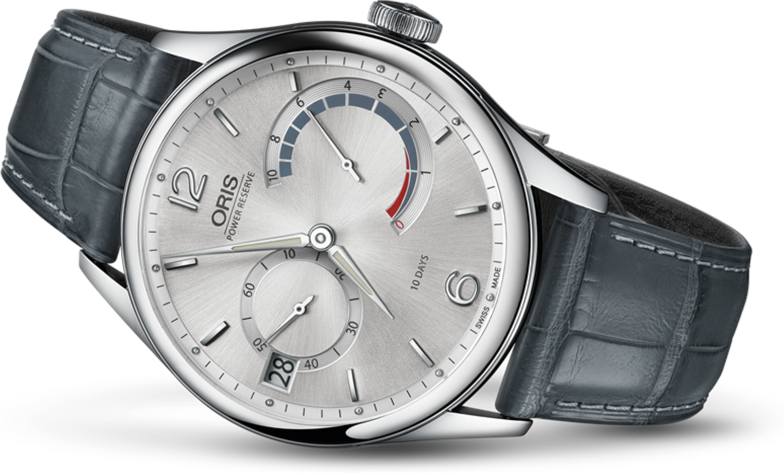 Mechanický strojek Oris Calibre 111 disponuje s úžasnou rezervou chodu 10 dní.