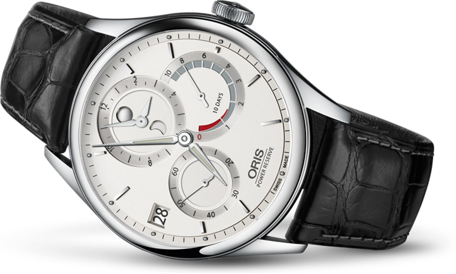 Mechanický strojek Oris Calibre 112 disponuje s úžasnou rezervou chodu 10 dní.