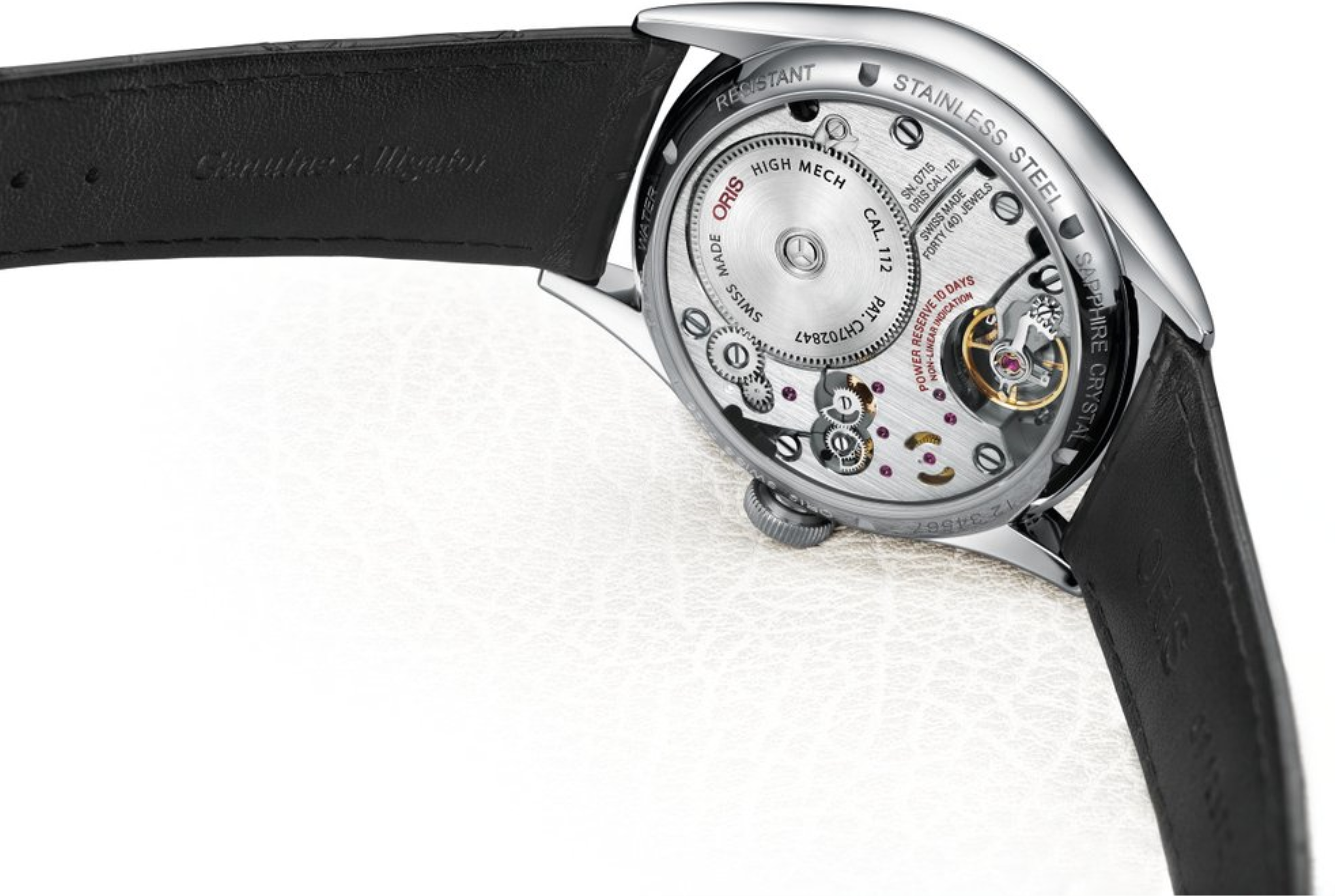 Mechanický strojek Oris Calibre 112 disponuje s úžasnou rezervou chodu 10 dní.