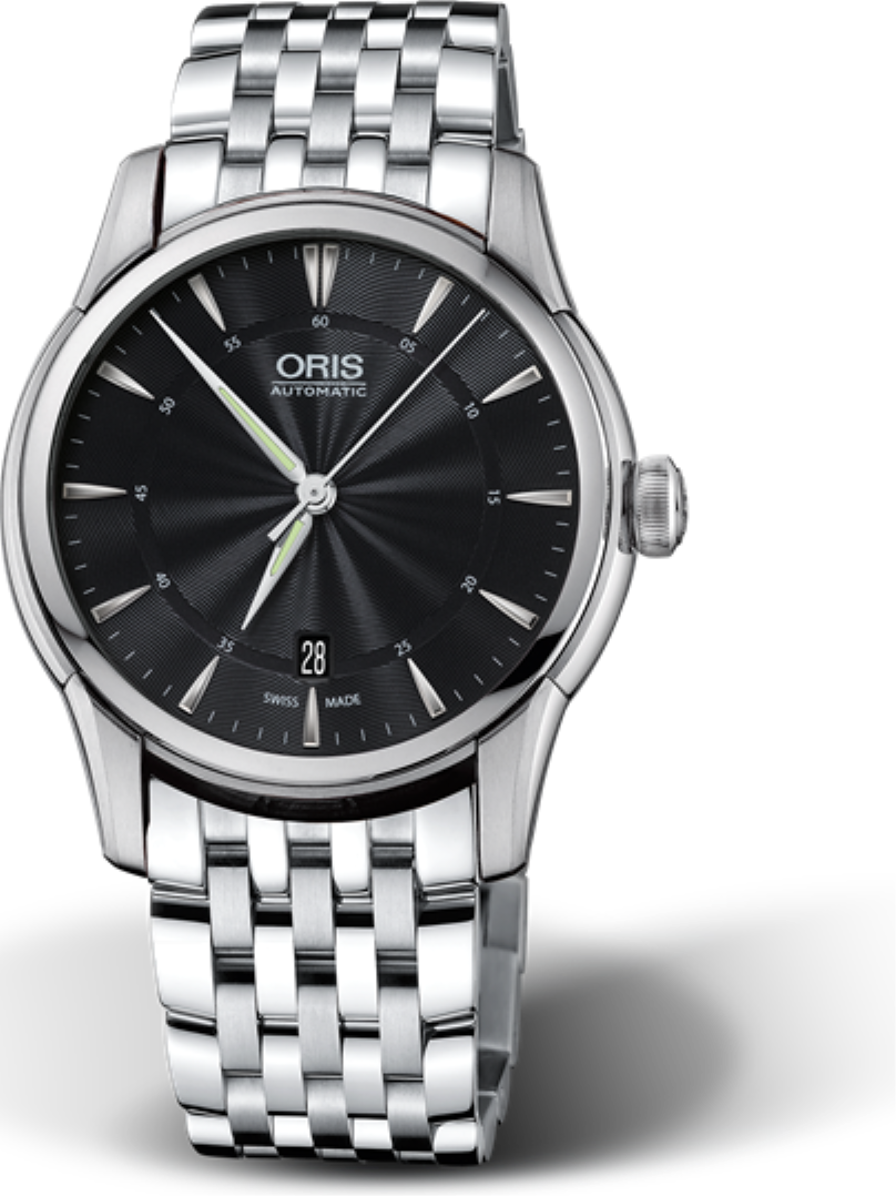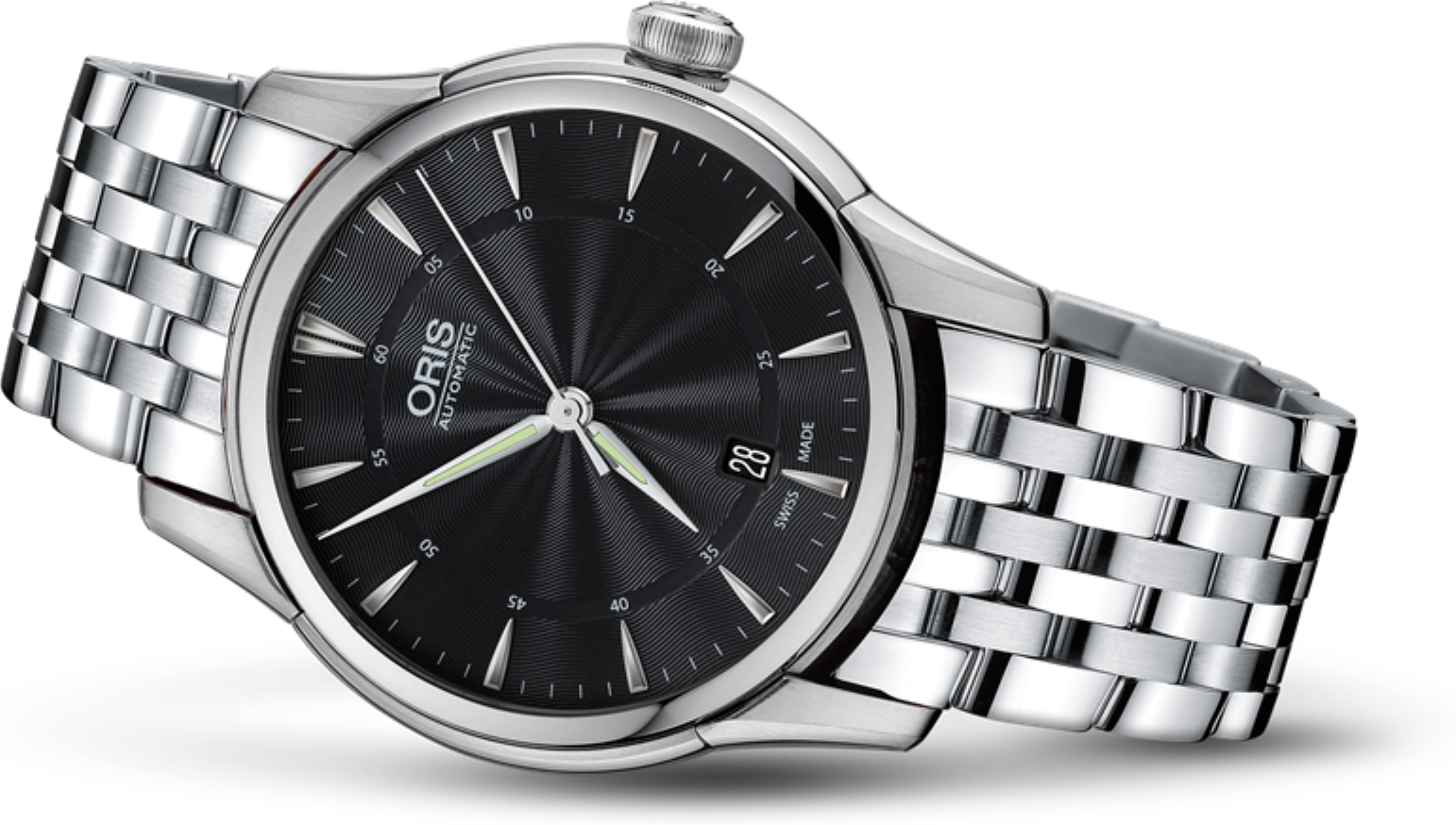 verze oceli třídy 316.Čitelnost je pro hodinky značky Oris prioritou. Proto nanáší na většinu ručiček a
