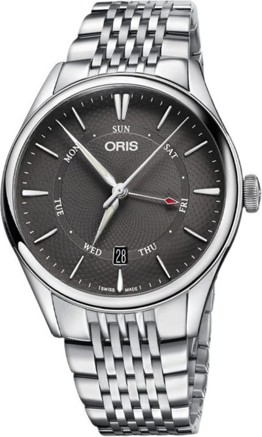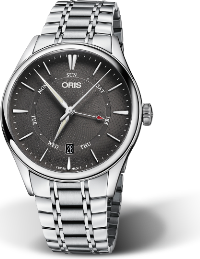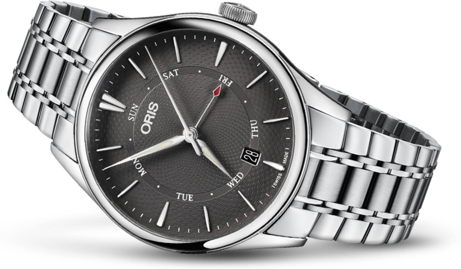 STYLOVĚ A VČAS, SEDM DNÍ V TÝDNU Datum Oris Artelier Pointer Day Date je jedním z podpisových návrhů Oris. Funkce ukazatele byla poprvé zavedena do hodinek Oris v roce 1938 a zde označuje den v týdnu. Sedí v elegantním pouzdře Artelier, všestranném a nadčasovém designu se zjednodušenou a stylovou siluetou.