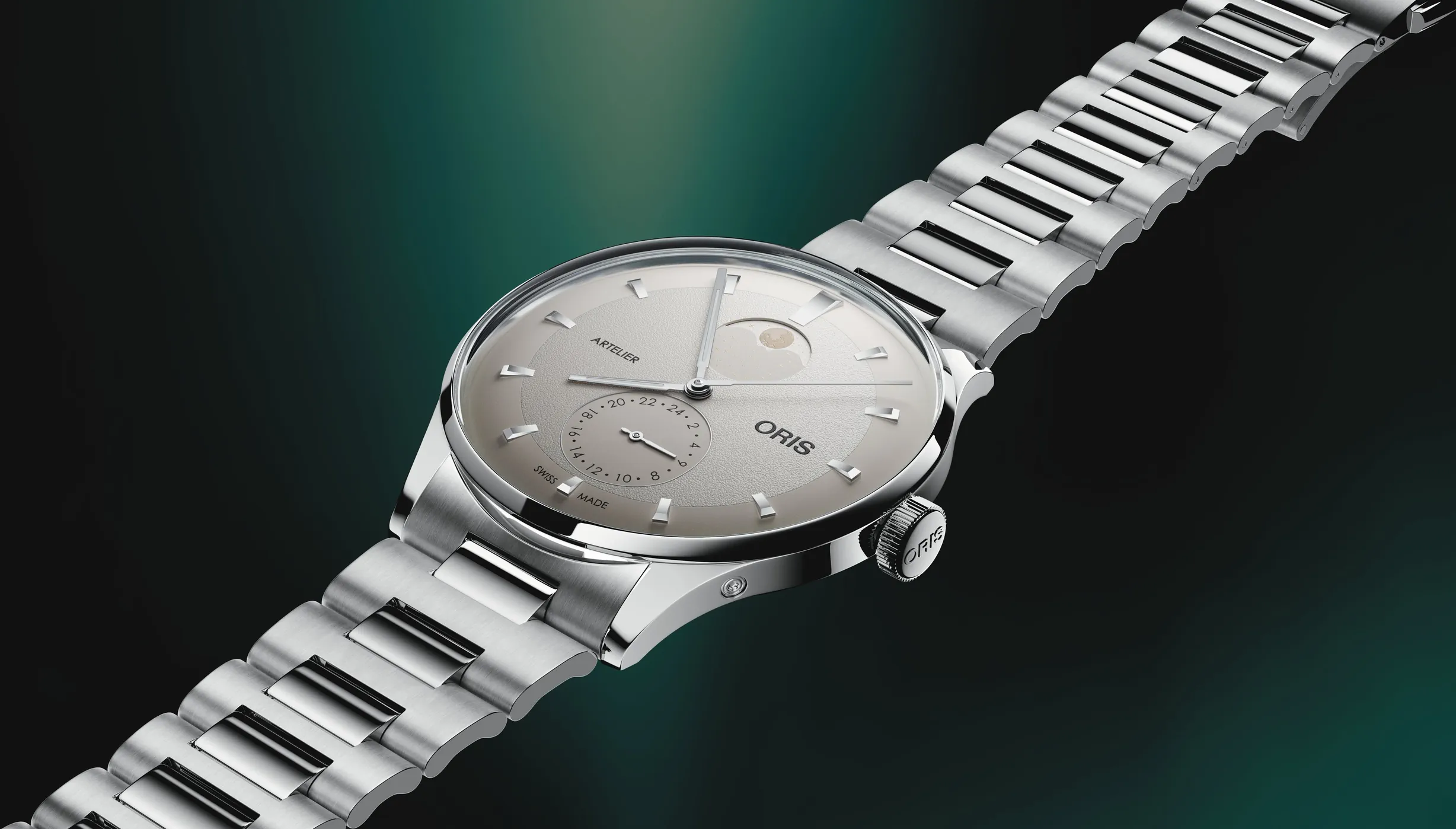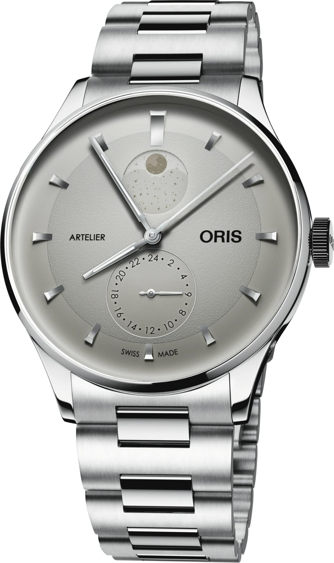 verze oceli třídy 316.Čitelnost je pro hodinky značky Oris prioritou. Proto nanáší na většinu ručiček a