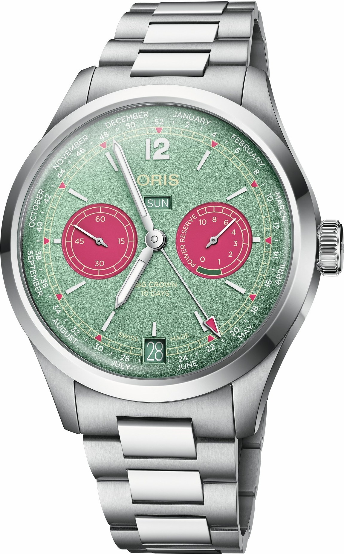 Tento model je zosobněním designové ikony značky Oris. Vícedílné pouzdro z nerezové oceli s průměrem 43 mm působí majestátně, a přesto si zachovává decentní eleganci vhodnou pro každodenní nošení. Vypouklé safírové sklíčko