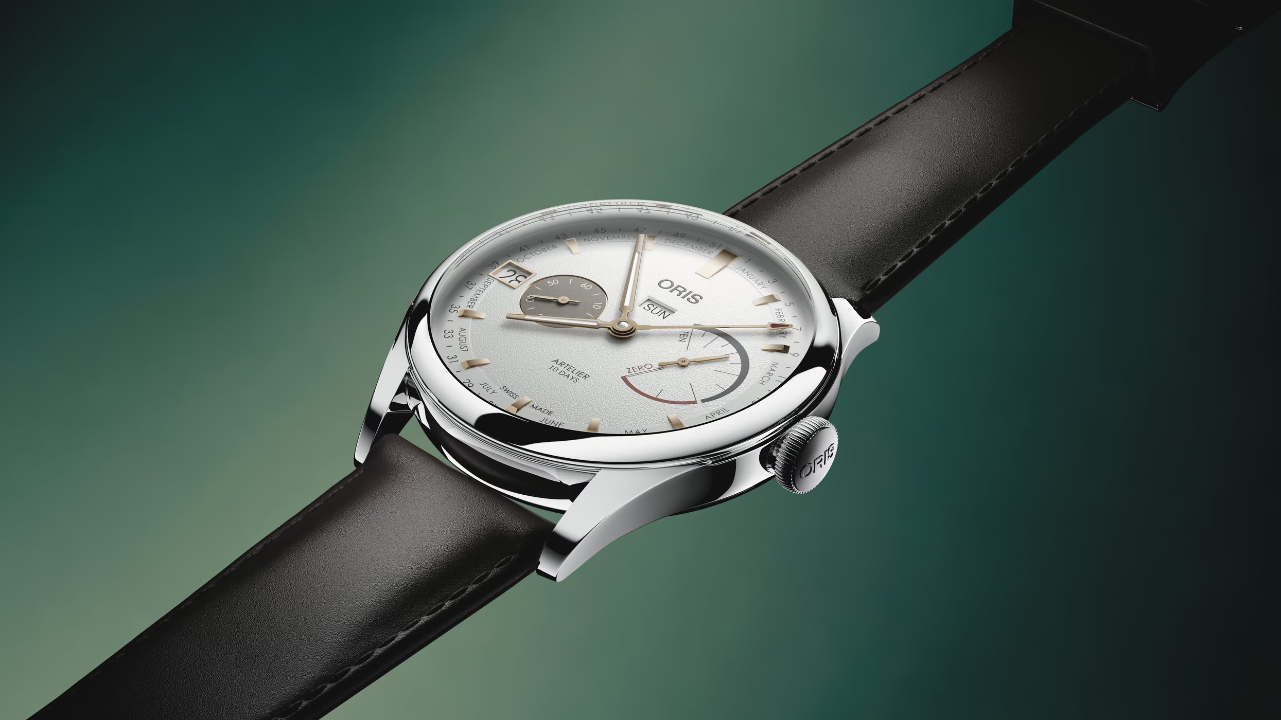 Mechanický strojek Oris Calibre 113 disponuje s úžasnou rezervou chodu 10 dní.