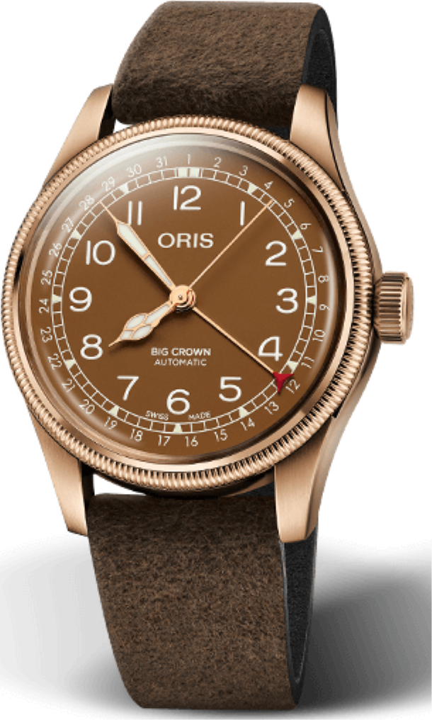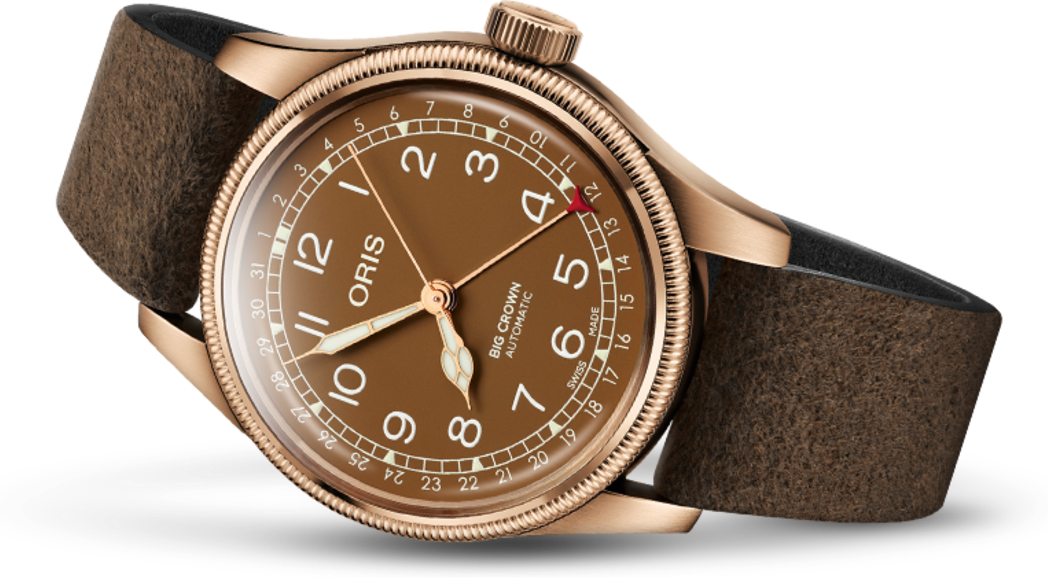 Big Crown Pointer Date je podpisovým designem společnosti Oris a oporou kolekce od roku 1938. Zde je pouzdro vyrobeno z masivního bronzu, teplého průmyslového materiálu, který symbolizuje věčnou hodnotu modelu, a je k dispozici s pouzdrem 36 mm nebo 40 mm a možností povrchové úpravy číselníku. Oris začal vyrábět pilotní hodinky ve 10. letech 19. století na úsvitu letectví a od té doby je průkopníkem v oboru. The Big Crown, jeden z podpisových vzorů společnosti Oris, byl poprvé představen v roc ...