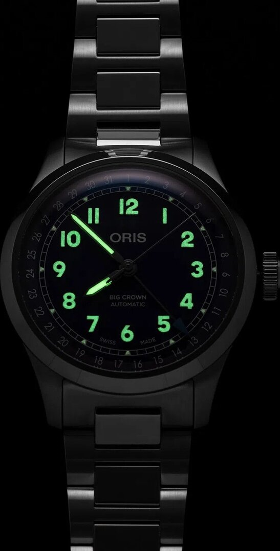 verze oceli třídy 316.Čitelnost je pro hodinky značky Oris prioritou. Proto nanáší na většinu ručiček a