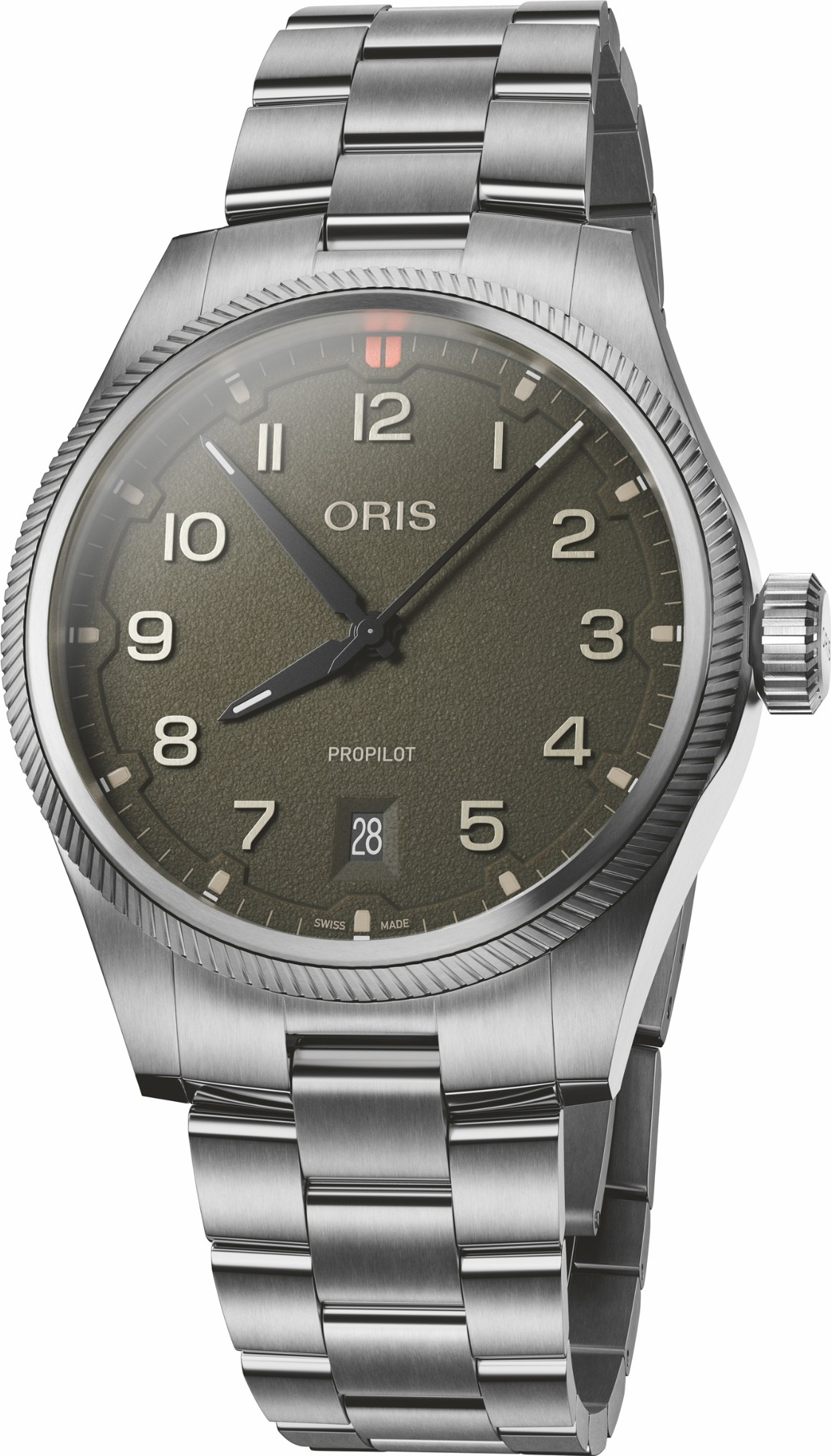 verze oceli třídy 316.Čitelnost je pro hodinky značky Oris prioritou. Proto nanáší na většinu ručiček a