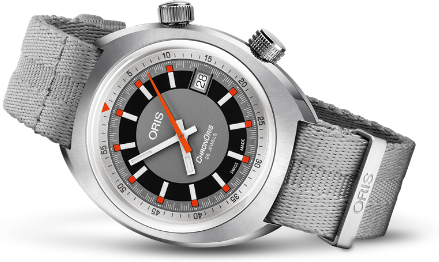 verze oceli třídy 316.Čitelnost je pro hodinky značky Oris prioritou. Proto nanáší na většinu ručiček a
