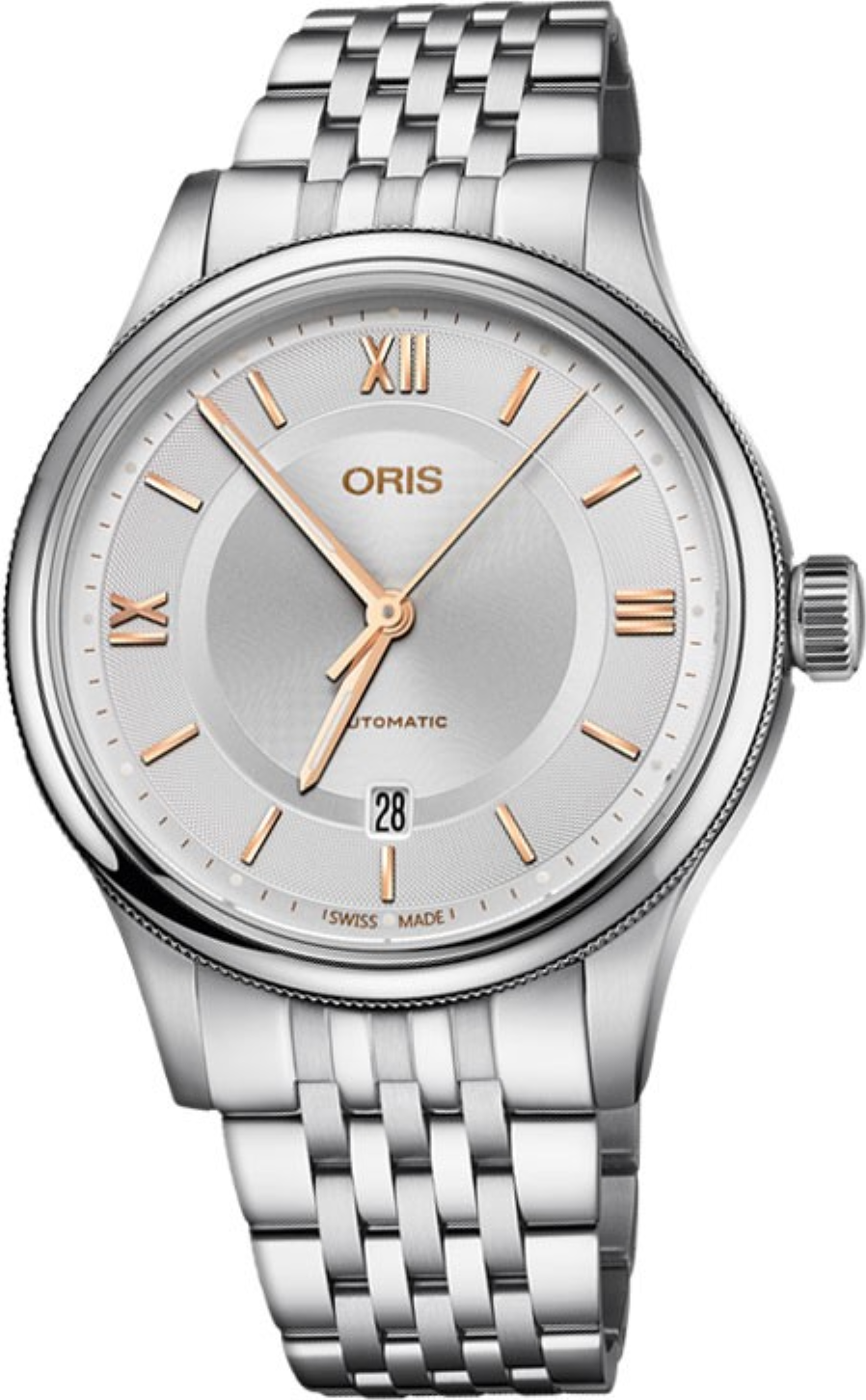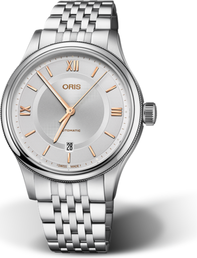 Modelová řada Oris Classic je důkazem, že nejjednodušší způsob může být také nejlepší. Zatímco avantgardní design má své místo, může existovat pouze spolu s nadčasovými měřítky - tyto kulaté, tříručkové datumové hodinky jsou výraznou volbou pro lidi ve velkém stylu. Hodinky jednoduchosti a kvality s třídílným pouzdrem z nerezové oceli, velkou korunkou a nádherně vyrytými číslicemi a indexy na jemně vzorovaném ciferníku. MÓDA SE MĚNÍ. KLASICKÉ MODERNÍ HODINKY ZŮSTÁVAJÍ.