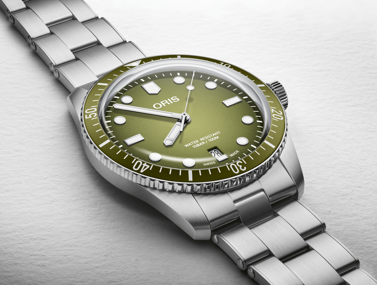 verze oceli třídy 316.Čitelnost je pro hodinky značky Oris prioritou. Proto nanáší na většinu ručiček a
