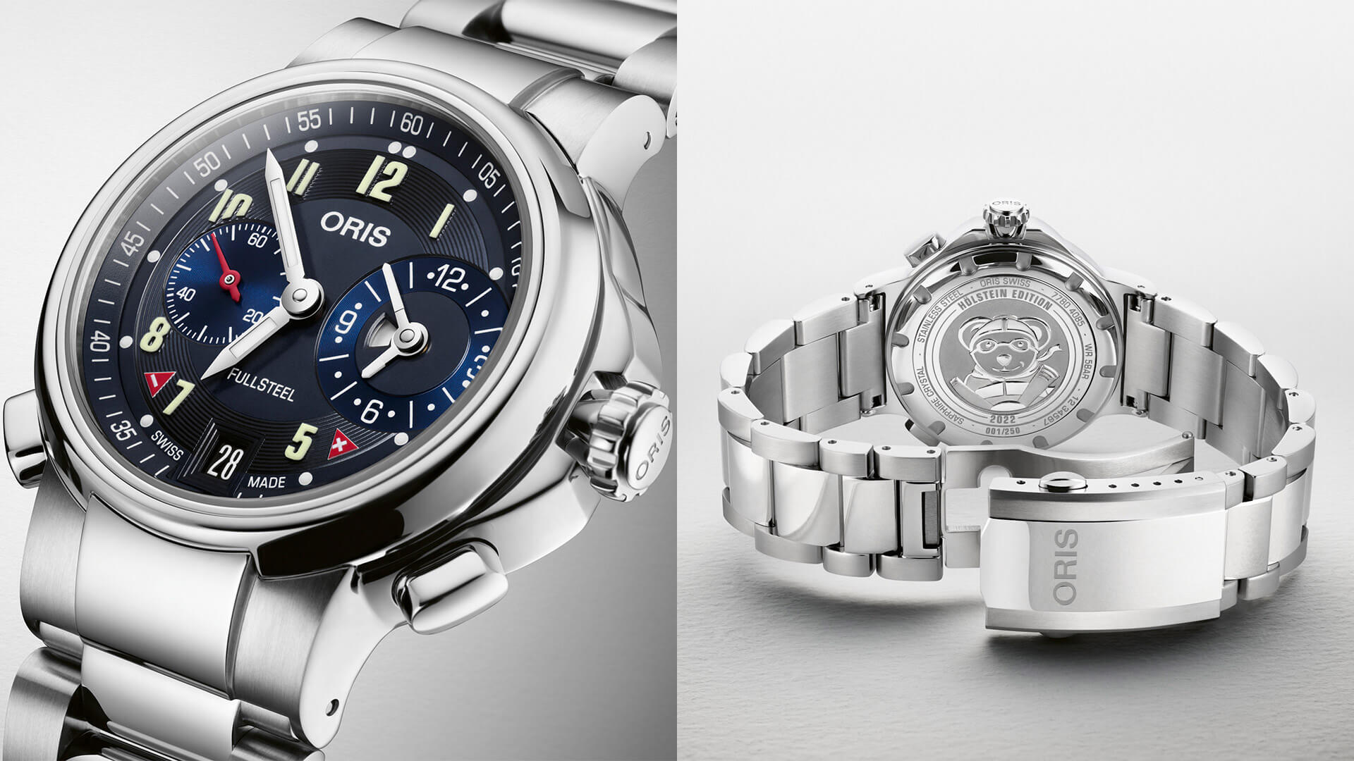 U příležitosti našich narozenin 1. června představuje Oris Hölstein Edition 2022, hodinky, které oživují ikonu, Full Steel. Zachycuje ducha devadesátých let a převratný automatický mechanický strojek osazený chronografem. Hodinky disponují dvojím ukazatelem času, čili lze na hodinkách sledovat čas dvou časových pásem. Originální nastavování otočnou lunetou pouzdra.