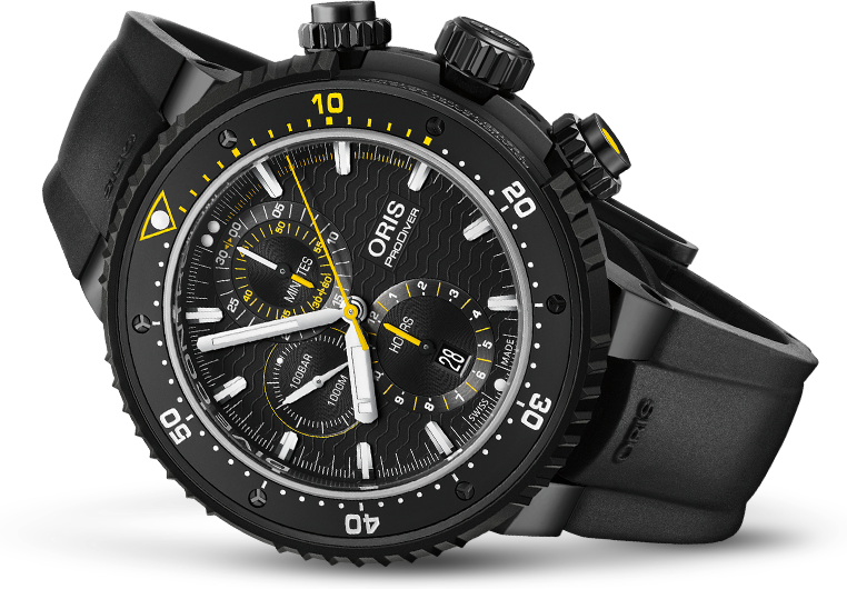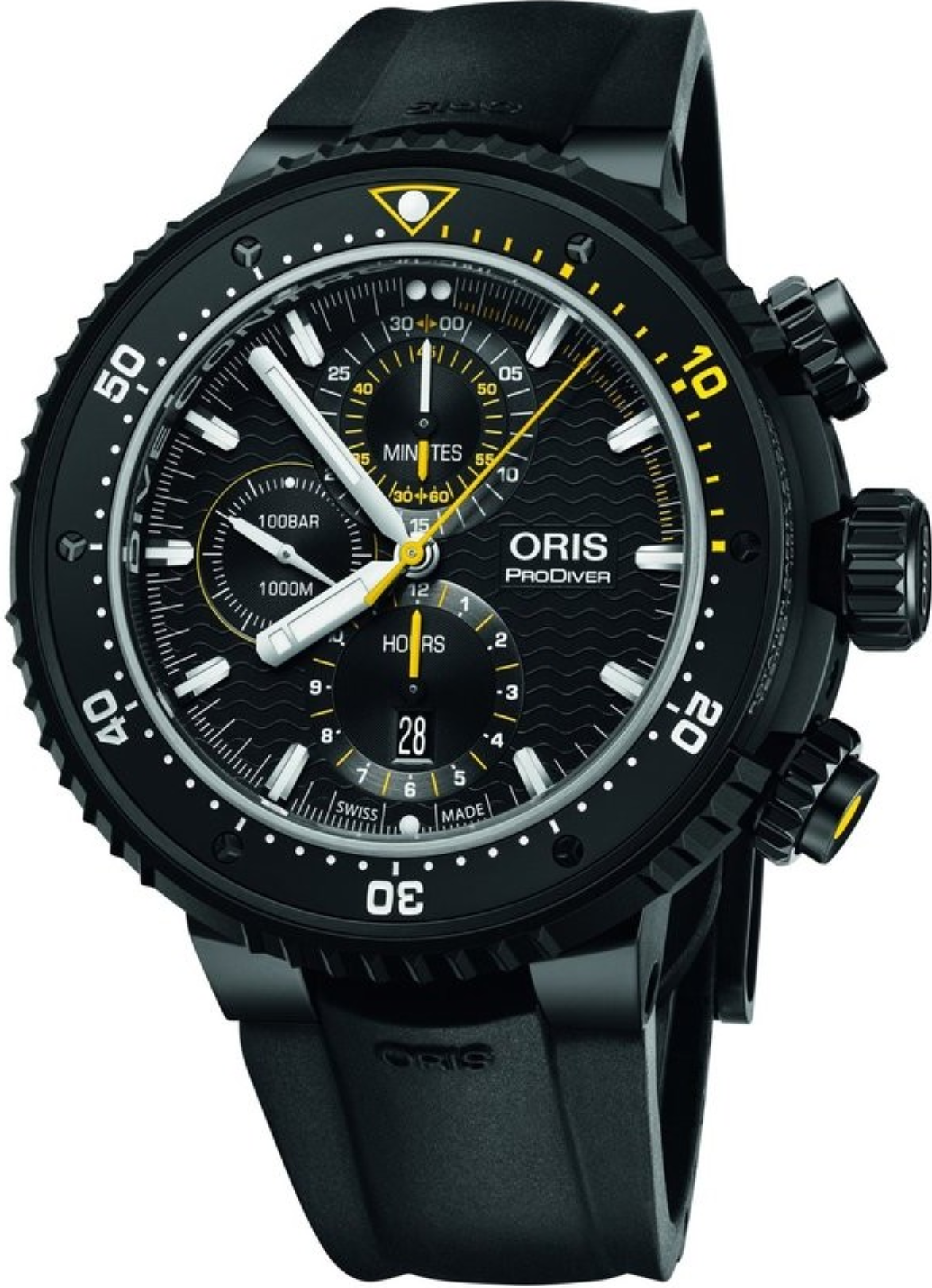 • Funkce a popis:Čas, datum, chronograf, strojek Oris 774 (základ Sellita SW 500 / Valjoux 7750) = 25 kamenových uložení, rezerva chodu 48 hodin, 28.800 polokmitů setrvačky za hodinu (4Hz) = přesnost chodu 2 - 4 vteřiny denně, hodinky se natahují automaticky (pohybem ruky) + lze natáhnout/dotáhnout hodinky i ručně korunkou, ručičky a indexy jsou potažené svítící (luminiscenční) vrstvou (Super-LumiNova), hodinky se dodávají ve speciálním prezentačním vodotěsném boxu spolu s dalším gumovým řemínkem a profesionálními nástroji pro výměnu řemínku