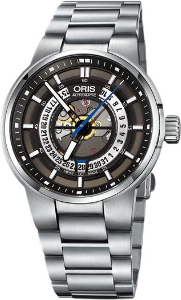 • Funkce a popis:Čas, datum, strojek Oris 733 (základ Sellita SW 200-1) = 26 kamenových uložení, 28.800 polokmitů setrvačky za hodinu (4Hz) = přesnost chodu 2 - 4 vteřiny denně, rezerva chodu 38 hodin, hodinky se natahují automaticky (pohybem ruky) + lze natáhnout/dotáhnout hodinky i ručně korunkou, ručičky Superluminova BG W9, průhledné zadní víčko pouzdra pro pohled na automatický strojek