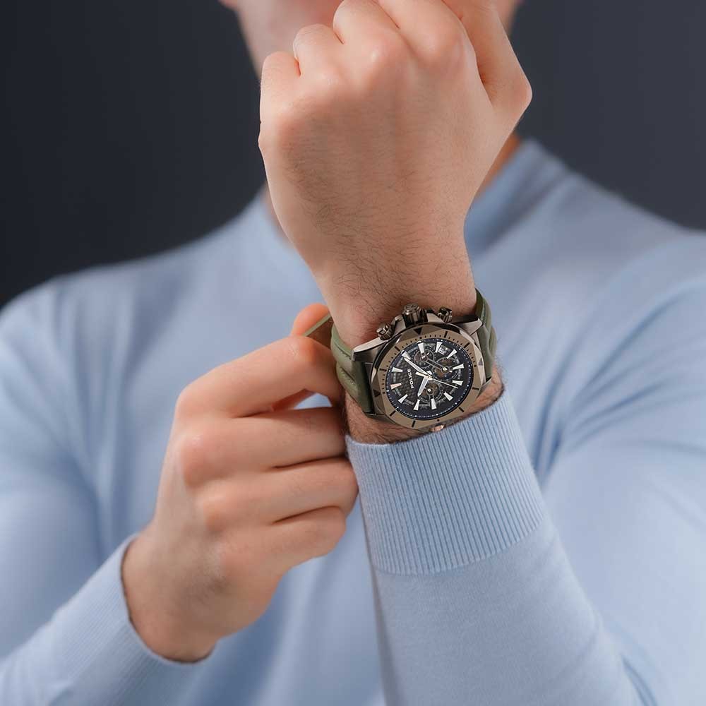 Quartz znamená latinsky krystal. Je tedy zřejmé, že hodinky nemohou být poháněny krystalem - jsou jím, jak již bylo zmíněno výše, řízeny pro maximální přesnost chodu. Krystal je Alfa a Omega přesnosti hodinek - respektive jeho kvalita. Čím je krystal kvalitnější, tím lépe usměrňuje frekvenci kmitů a impulsy jdoucí k magnetickému rotoru jsou stabilnější a chod hodinek je poté přesnější. Kvalita krystalu není úplně směrodatná pouze u hodinek rádiem řízených či hodinek řízených signálem GPS, jelikož tyto hodinky jsou každý den seřizovány signálem pro naprosto přesný čas (obvykle 2x denně). Časový rozdíl, který může vzniknout v mezidobí příjmu signálu je díky dnešním kvalitním krystalům tak nepatrný (cca. setiny vteřiny), že není možné tuto diferenci okem zaznamenat. U hodinek řízených krystalem je pohon zajišťován baterií - napájecím článkem nebo akumulátorem, který se dobíjí např. světlem. Baterie v hodinkách vydrží - dle typu elektroniky a celkově sestrojení strojku - 2 - 10 let. Je důležité vědět, že nejmenší spotřebu napájecího článku (baterie) mají hodinky digitální. Je to proto, protože zde není žádný velký spotřební přísun energie - nasvicuje se zde "pouze" tekutý krystal. Naopak největší spotřebu mají quartzové hodinky v případě zapnutí ručkového chronografu, kdy spolu s časem nám hodinky stopují. Zde je odběr baterie podstatně vyšší, nedoporučuje se tedy mít stále chronograf akční - pouze... (číst více)