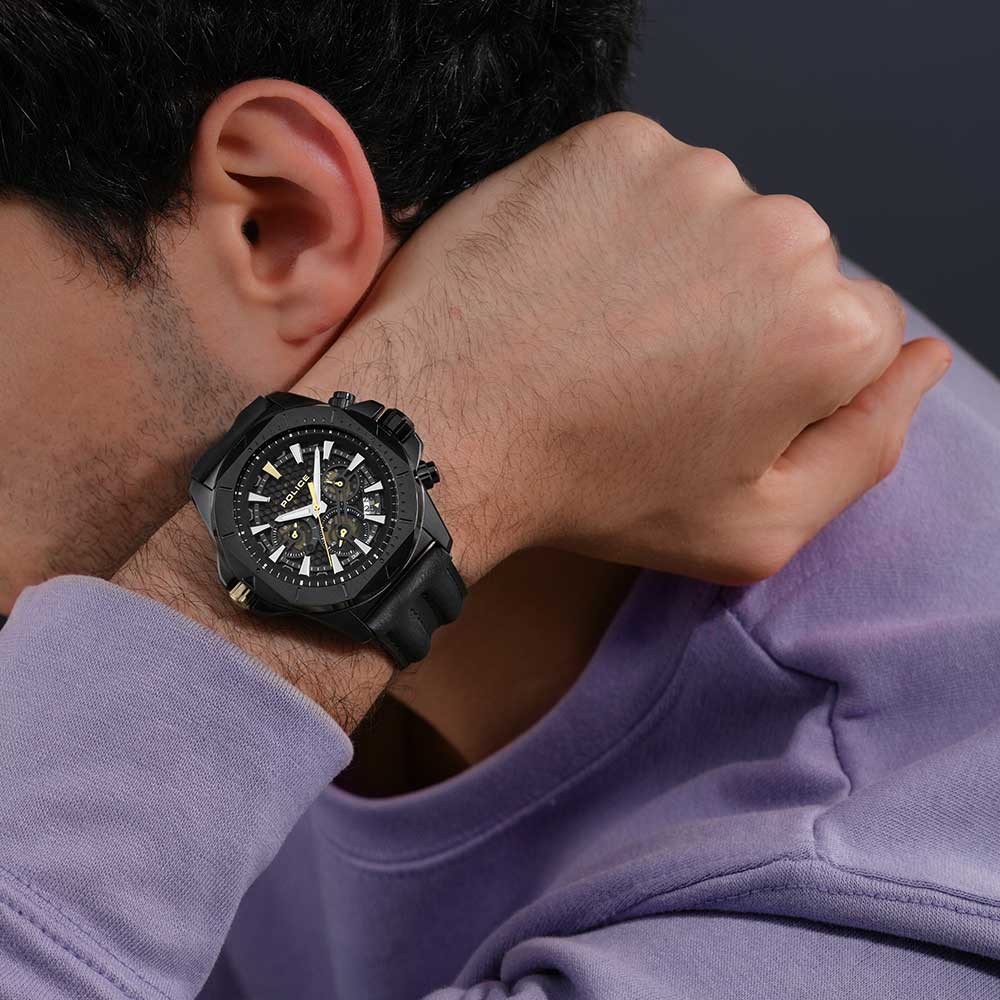 Quartz znamená latinsky krystal. Je tedy zřejmé, že hodinky nemohou být poháněny krystalem - jsou jím, jak již bylo zmíněno výše, řízeny pro maximální přesnost chodu. Krystal je Alfa a Omega přesnosti hodinek - respektive jeho kvalita. Čím je krystal kvalitnější, tím lépe usměrňuje frekvenci kmitů a impulsy jdoucí k magnetickému rotoru jsou stabilnější a chod hodinek je poté přesnější. Kvalita krystalu není úplně směrodatná pouze u hodinek rádiem řízených či hodinek řízených signálem GPS, jelikož tyto hodinky jsou každý den seřizovány signálem pro naprosto přesný čas (obvykle 2x denně). Časový rozdíl, který může vzniknout v mezidobí příjmu signálu je díky dnešním kvalitním krystalům tak nepatrný (cca. setiny vteřiny), že není možné tuto diferenci okem zaznamenat. U hodinek řízených krystalem je pohon zajišťován baterií - napájecím článkem nebo akumulátorem, který se dobíjí např. světlem. Baterie v hodinkách vydrží - dle typu elektroniky a celkově sestrojení strojku - 2 - 10 let. Je důležité vědět, že nejmenší spotřebu napájecího článku (baterie) mají hodinky digitální. Je to proto, protože zde není žádný velký spotřební přísun energie - nasvicuje se zde "pouze" tekutý krystal. Naopak největší spotřebu mají quartzové hodinky v případě zapnutí ručkového chronografu, kdy spolu s časem nám hodinky stopují. Zde je odběr baterie podstatně vyšší, nedoporučuje se tedy mít stále chronograf akční - pouze... (číst více)