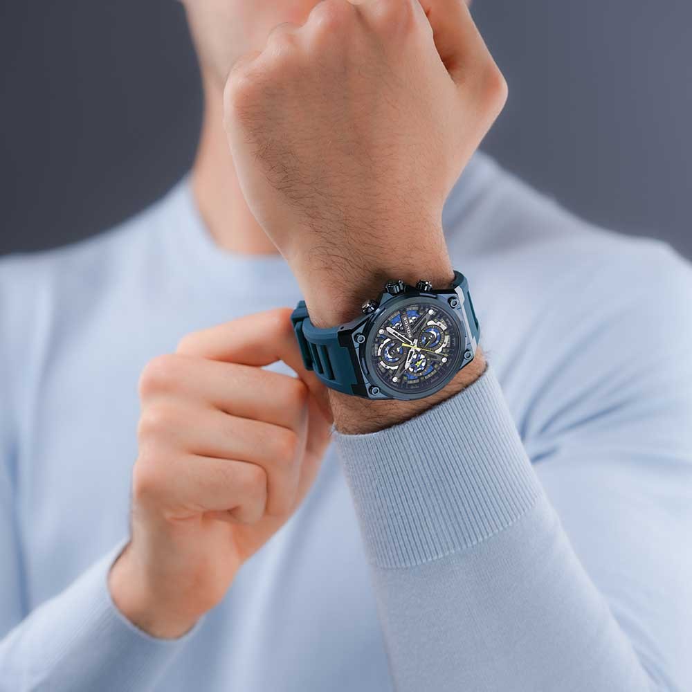 Quartz znamená latinsky krystal. Je tedy zřejmé, že hodinky nemohou být poháněny krystalem - jsou jím, jak již bylo zmíněno výše, řízeny pro maximální přesnost chodu. Krystal je Alfa a Omega přesnosti hodinek - respektive jeho kvalita. Čím je krystal kvalitnější, tím lépe usměrňuje frekvenci kmitů a impulsy jdoucí k magnetickému rotoru jsou stabilnější a chod hodinek je poté přesnější. Kvalita krystalu není úplně směrodatná pouze u hodinek rádiem řízených či hodinek řízených signálem GPS, jelikož tyto hodinky jsou každý den seřizovány signálem pro naprosto přesný čas (obvykle 2x denně). Časový rozdíl, který může vzniknout v mezidobí příjmu signálu je díky dnešním kvalitním krystalům tak nepatrný (cca. setiny vteřiny), že není možné tuto diferenci okem zaznamenat. U hodinek řízených krystalem je pohon zajišťován baterií - napájecím článkem nebo akumulátorem, který se dobíjí např. světlem. Baterie v hodinkách vydrží - dle typu elektroniky a celkově sestrojení strojku - 2 - 10 let. Je důležité vědět, že nejmenší spotřebu napájecího článku (baterie) mají hodinky digitální. Je to proto, protože zde není žádný velký spotřební přísun energie - nasvicuje se zde "pouze" tekutý krystal. Naopak největší spotřebu mají quartzové hodinky v případě zapnutí ručkového chronografu, kdy spolu s časem nám hodinky stopují. Zde je odběr baterie podstatně vyšší, nedoporučuje se tedy mít stále chronograf akční - pouze... (číst více)