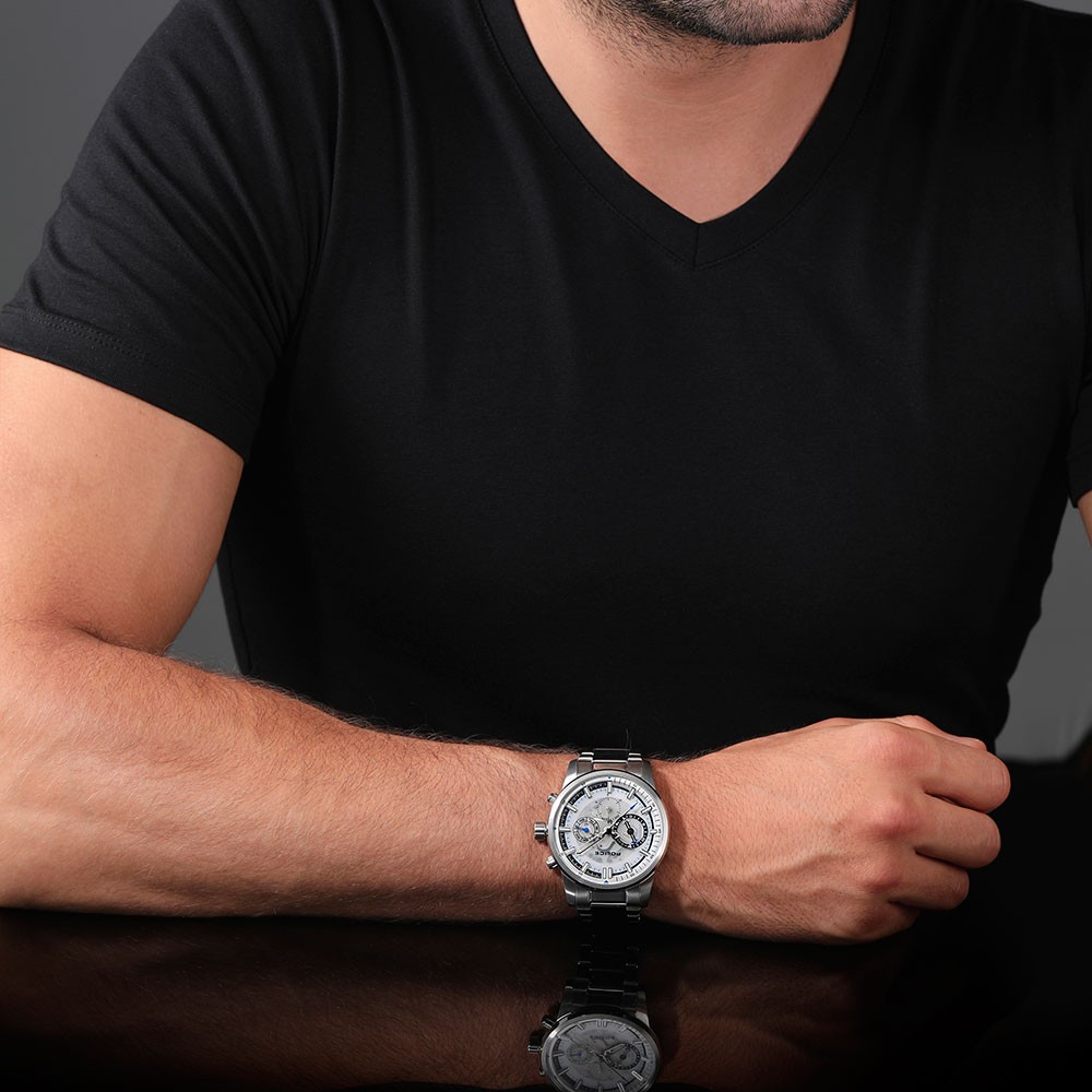 Quartz znamená latinsky krystal. Je tedy zřejmé, že hodinky nemohou být poháněny krystalem - jsou jím, jak již bylo zmíněno výše, řízeny pro maximální přesnost chodu. Krystal je Alfa a Omega přesnosti hodinek - respektive jeho kvalita. Čím je krystal kvalitnější, tím lépe usměrňuje frekvenci kmitů a impulsy jdoucí k magnetickému rotoru jsou stabilnější a chod hodinek je poté přesnější. Kvalita krystalu není úplně směrodatná pouze u hodinek rádiem řízených či hodinek řízených signálem GPS, jelikož tyto hodinky jsou každý den seřizovány signálem pro naprosto přesný čas (obvykle 2x denně). Časový rozdíl, který může vzniknout v mezidobí příjmu signálu je díky dnešním kvalitním krystalům tak nepatrný (cca. setiny vteřiny), že není možné tuto diferenci okem zaznamenat. U hodinek řízených krystalem je pohon zajišťován baterií - napájecím článkem nebo akumulátorem, který se dobíjí např. světlem. Baterie v hodinkách vydrží - dle typu elektroniky a celkově sestrojení strojku - 2 - 10 let. Je důležité vědět, že nejmenší spotřebu napájecího článku (baterie) mají hodinky digitální. Je to proto, protože zde není žádný velký spotřební přísun energie - nasvicuje se zde "pouze" tekutý krystal. Naopak největší spotřebu mají quartzové hodinky v případě zapnutí ručkového chronografu, kdy spolu s časem nám hodinky stopují. Zde je odběr baterie podstatně vyšší, nedoporučuje se tedy mít stále chronograf akční - pouze... (číst více)
