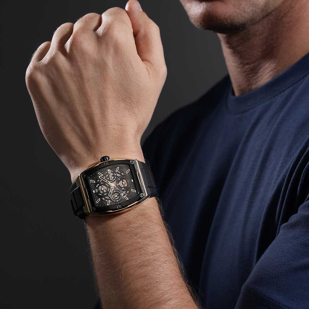 Quartz znamená latinsky krystal. Je tedy zřejmé, že hodinky nemohou být poháněny krystalem - jsou jím, jak již bylo zmíněno výše, řízeny pro maximální přesnost chodu. Krystal je Alfa a Omega přesnosti hodinek - respektive jeho kvalita. Čím je krystal kvalitnější, tím lépe usměrňuje frekvenci kmitů a impulsy jdoucí k magnetickému rotoru jsou stabilnější a chod hodinek je poté přesnější. Kvalita krystalu není úplně směrodatná pouze u hodinek rádiem řízených či hodinek řízených signálem GPS, jelikož tyto hodinky jsou každý den seřizovány signálem pro naprosto přesný čas (obvykle 2x denně). Časový rozdíl, který může vzniknout v mezidobí příjmu signálu je díky dnešním kvalitním krystalům tak nepatrný (cca. setiny vteřiny), že není možné tuto diferenci okem zaznamenat. U hodinek řízených krystalem je pohon zajišťován baterií - napájecím článkem nebo akumulátorem, který se dobíjí např. světlem. Baterie v hodinkách vydrží - dle typu elektroniky a celkově sestrojení strojku - 2 - 10 let. Je důležité vědět, že nejmenší spotřebu napájecího článku (baterie) mají hodinky digitální. Je to proto, protože zde není žádný velký spotřební přísun energie - nasvicuje se zde "pouze" tekutý krystal. Naopak největší spotřebu mají quartzové hodinky v případě zapnutí ručkového chronografu, kdy spolu s časem nám hodinky stopují. Zde je odběr baterie podstatně vyšší, nedoporučuje se tedy mít stále chronograf akční - pouze... (číst více)