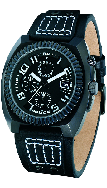 Bíle prošívaný pásek perfektně ladí s bílými prvky v číselníku - oblíbený a řádaný model značky Police.
