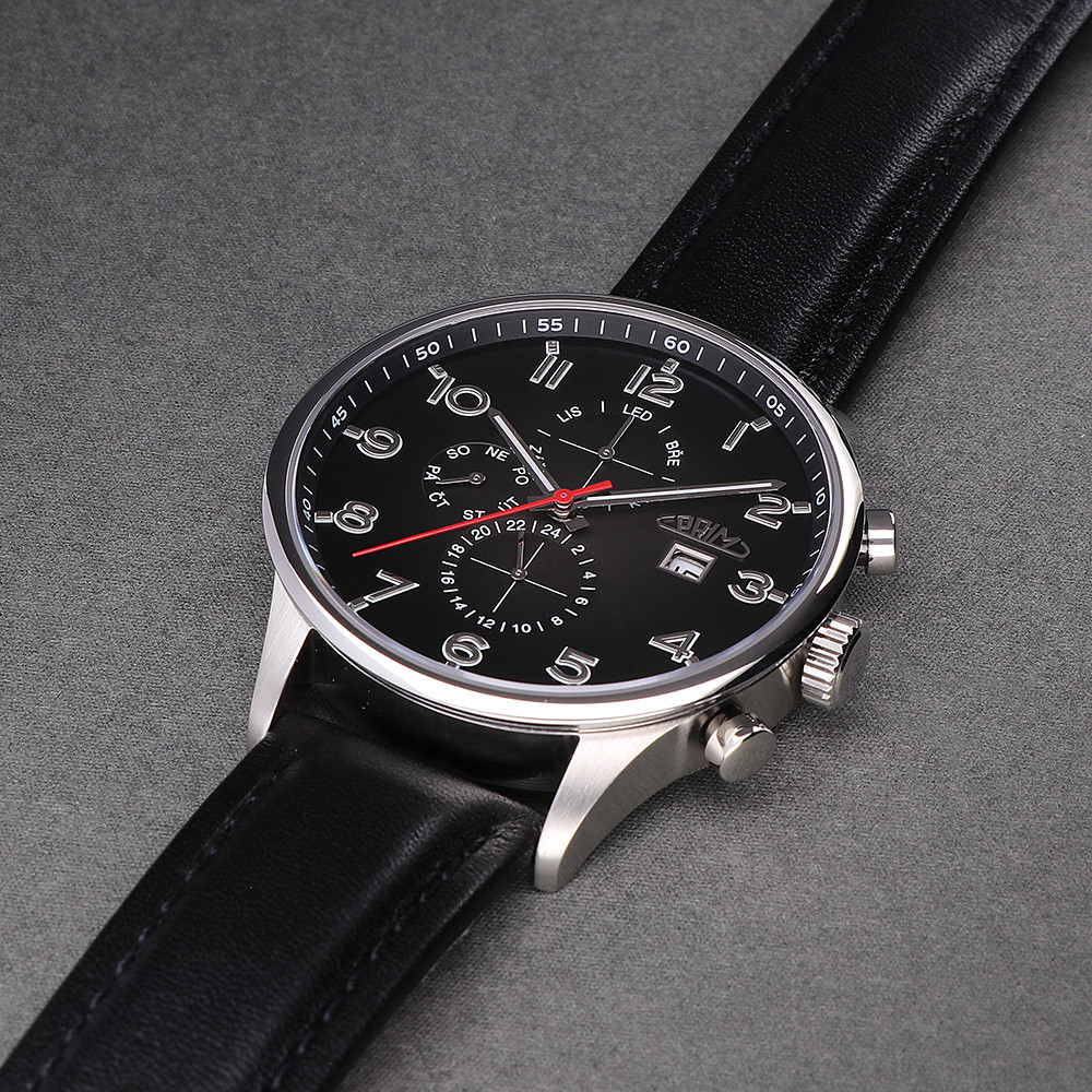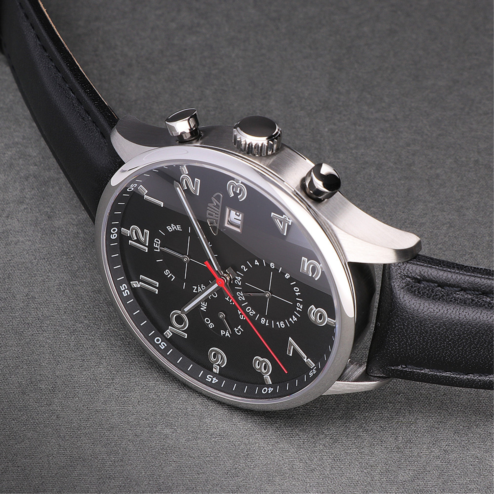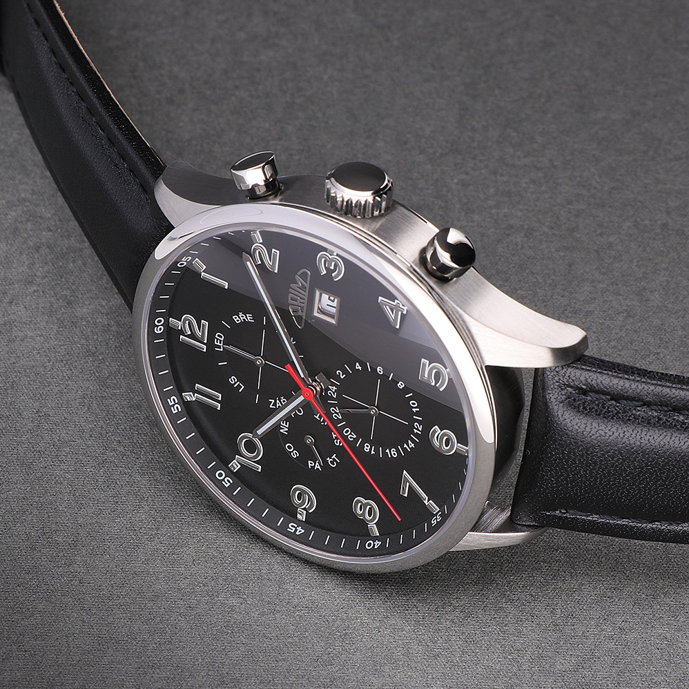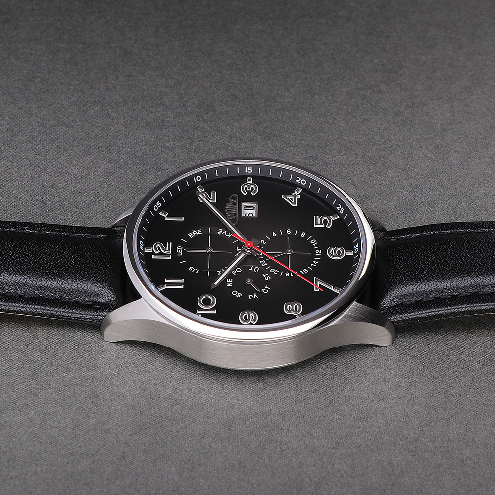 • Funkce a popis:Čas, datum, den v týdnu a měsíce v roce v češtině, duální 24 hodinový číselník, svítící ručičky, automatický strojek Prim 2867 s rezervou chodu 36 hodin, čísla na číselníku s 3D efektem - vystouplá z číselníku