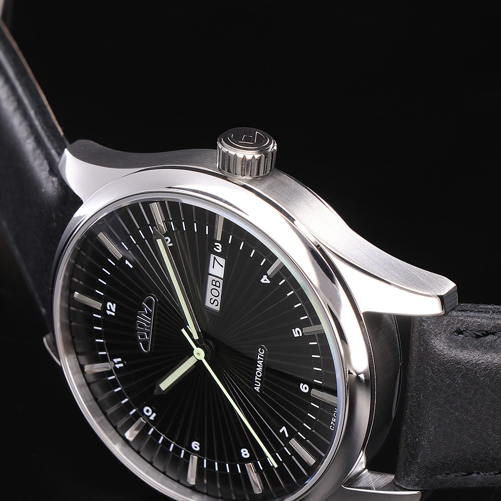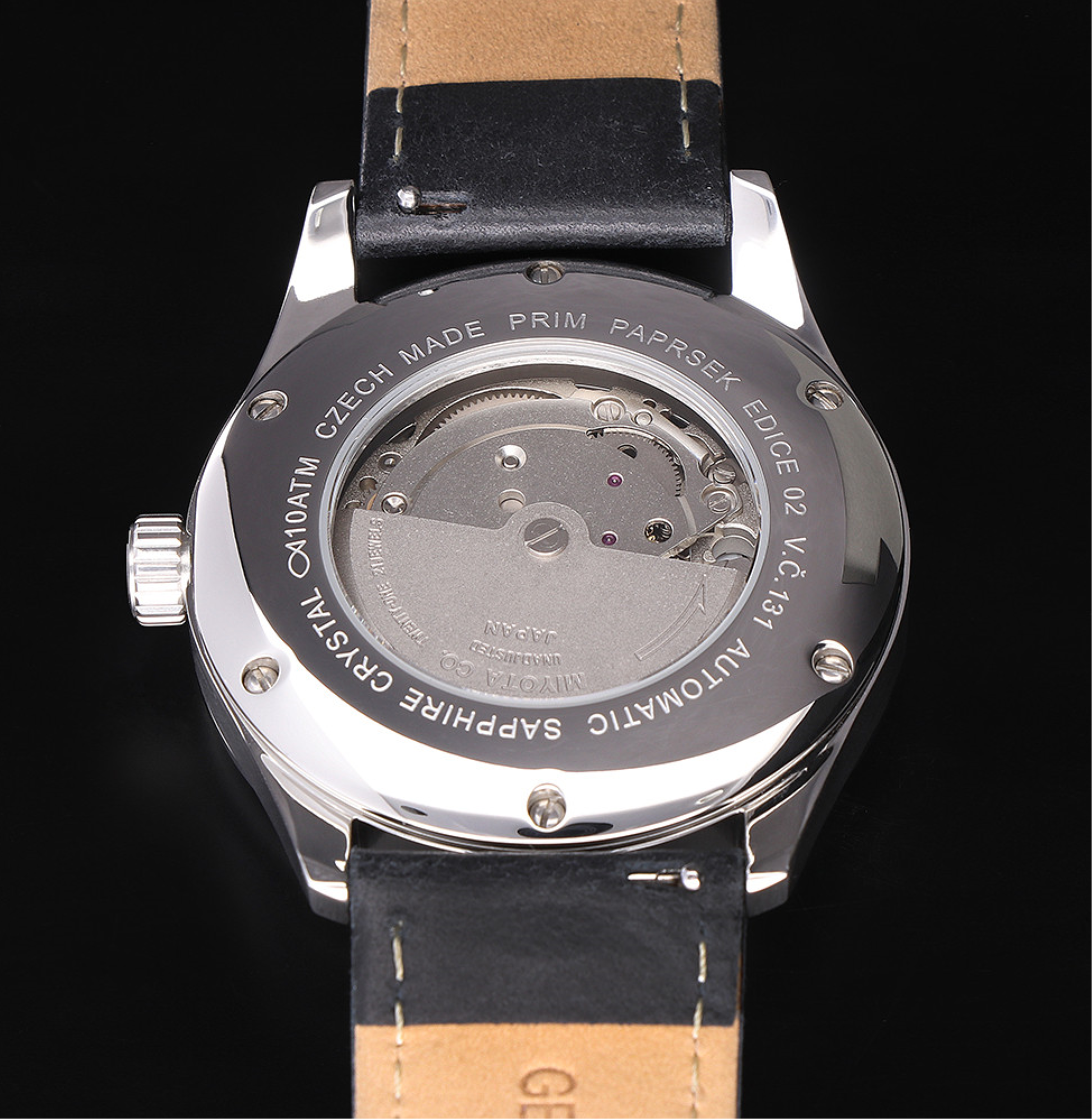 • Funkce a popis:Čas, datum, den v týdnu v češtině, automatický japonský strojek Miyota 8205, luminiscenční ručičky, šroubovací korunka