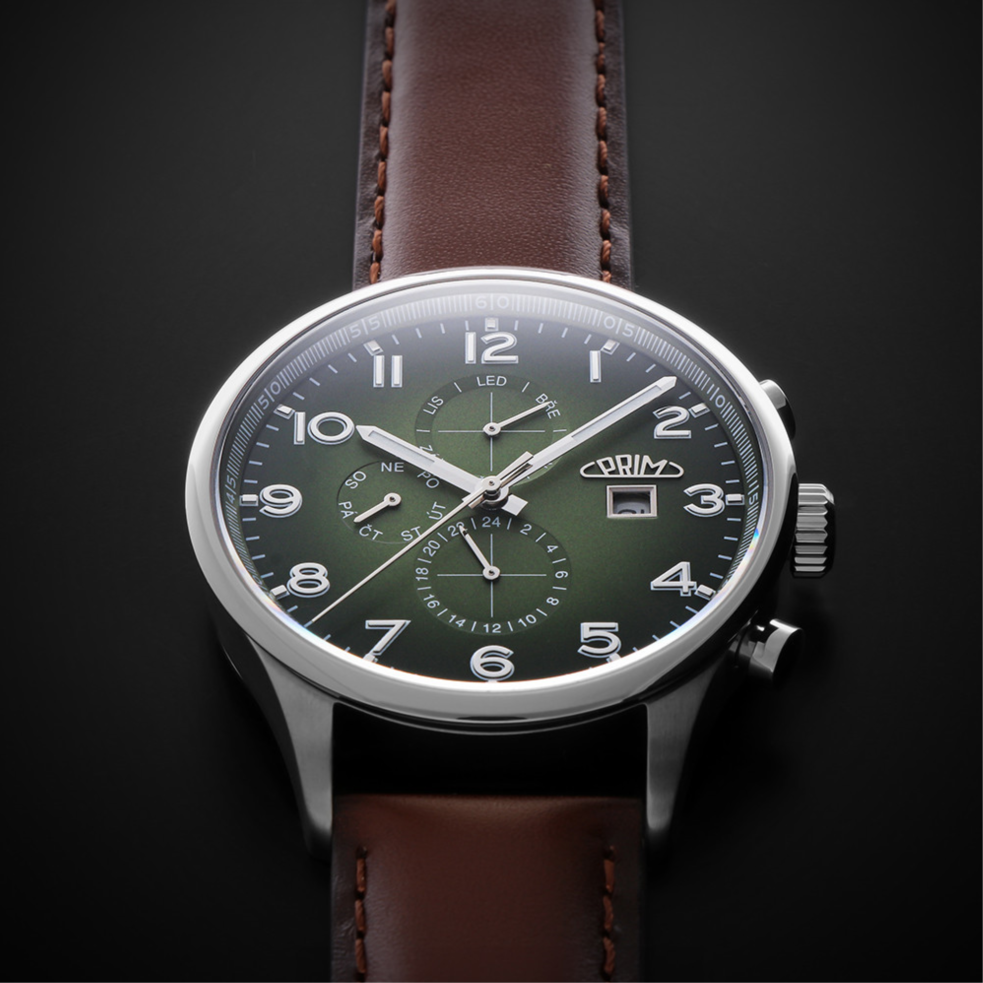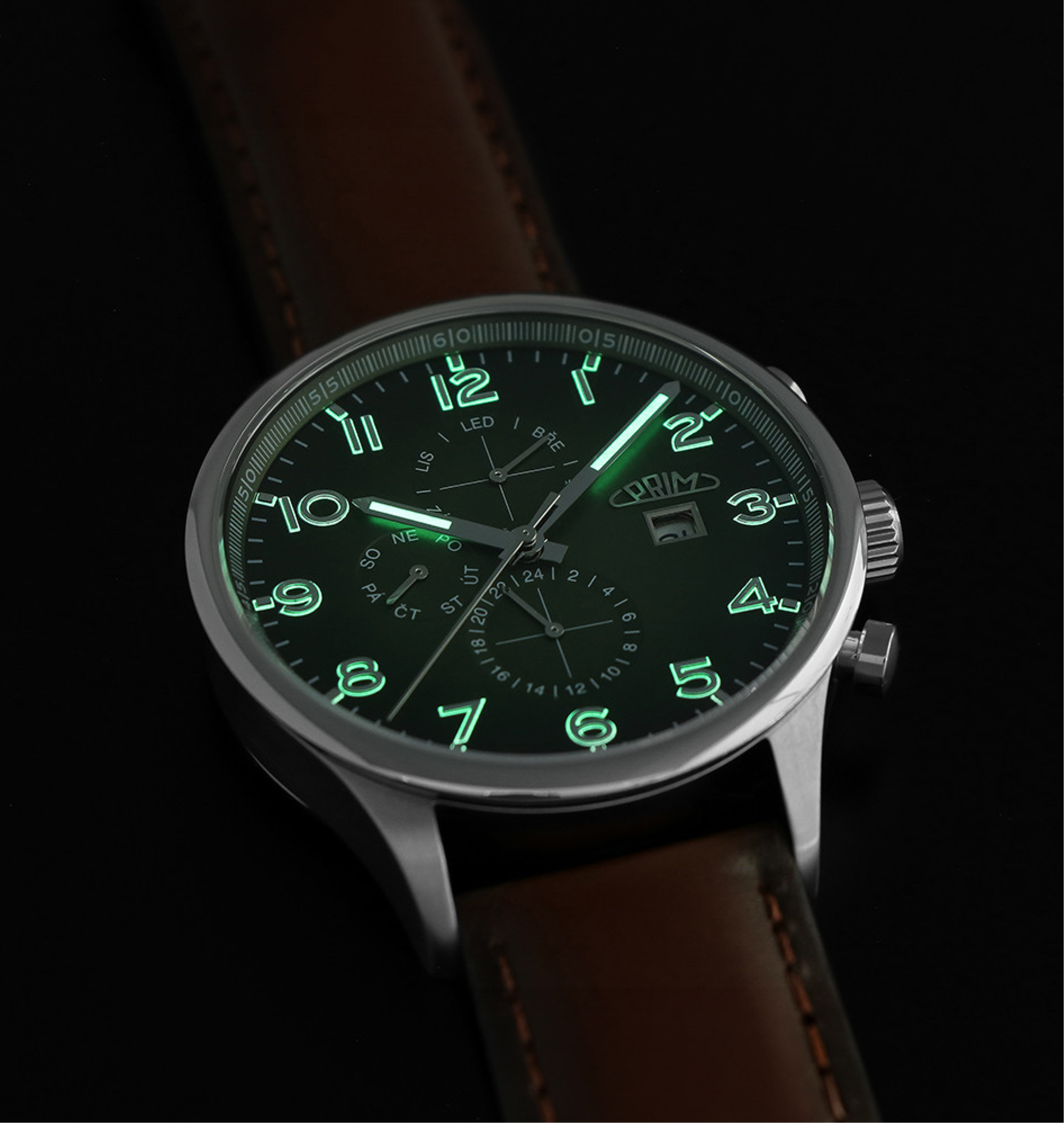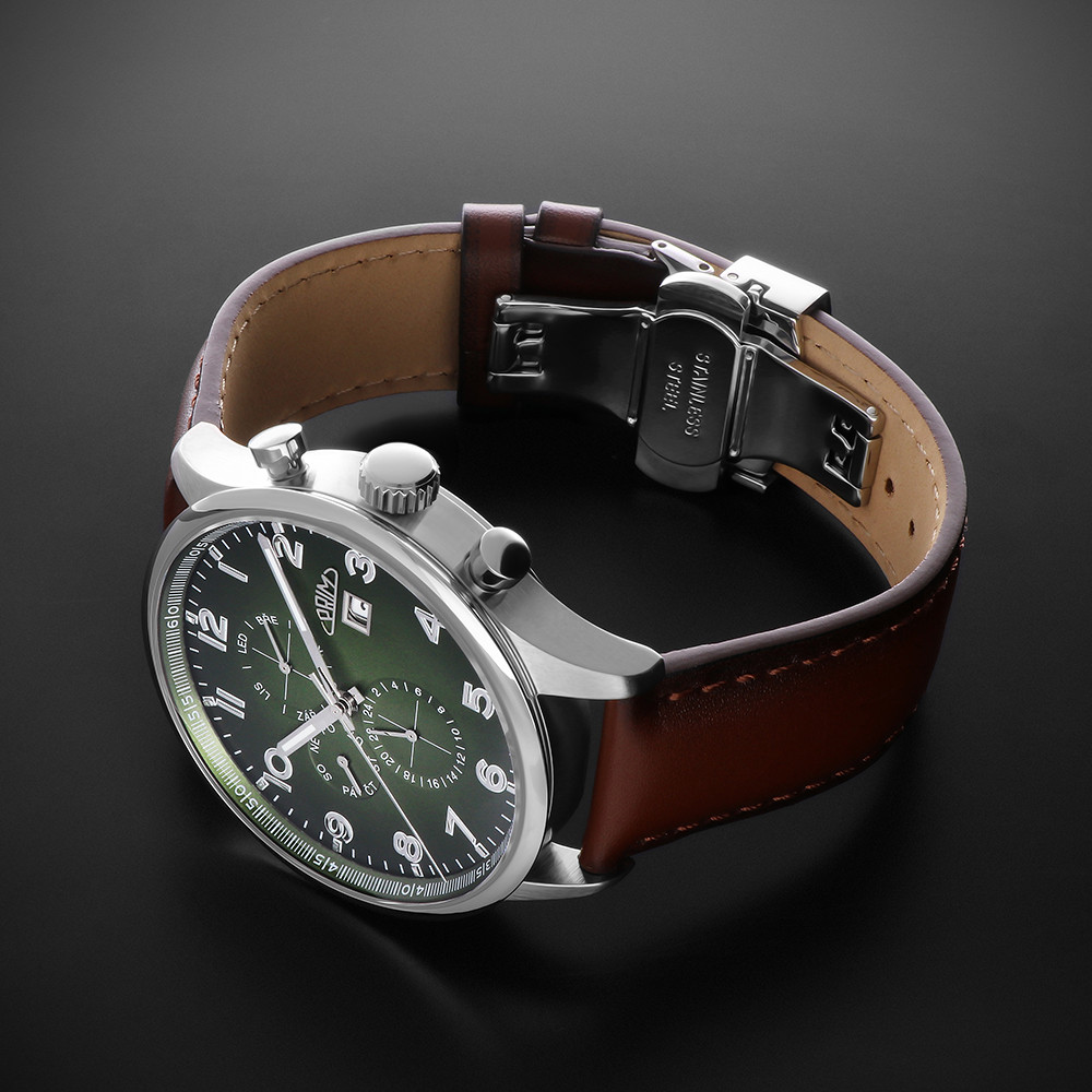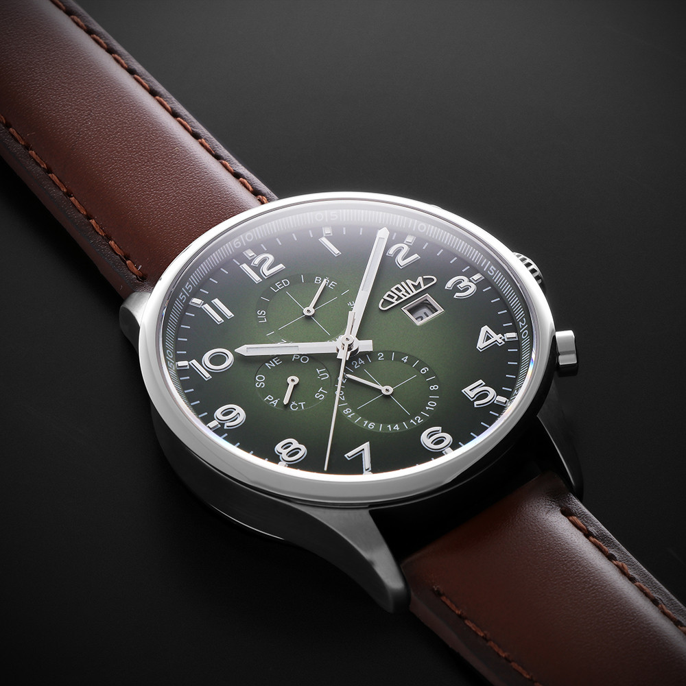 • Funkce a popis:Čas, datum, den v týdnu a měsíc v roce v češtině, multifunkční kalibr Seagull 2867 s automatickým nátahem s rezervou chodu 36 hodin, polokmity setrvačky 21.600/h (4 Hz) = 4 - 7 vteřiny denně, čísla s 3D efektem - vystouplá z číselníku, 24 hod. číselník, luminiscence na ručkách, indexech