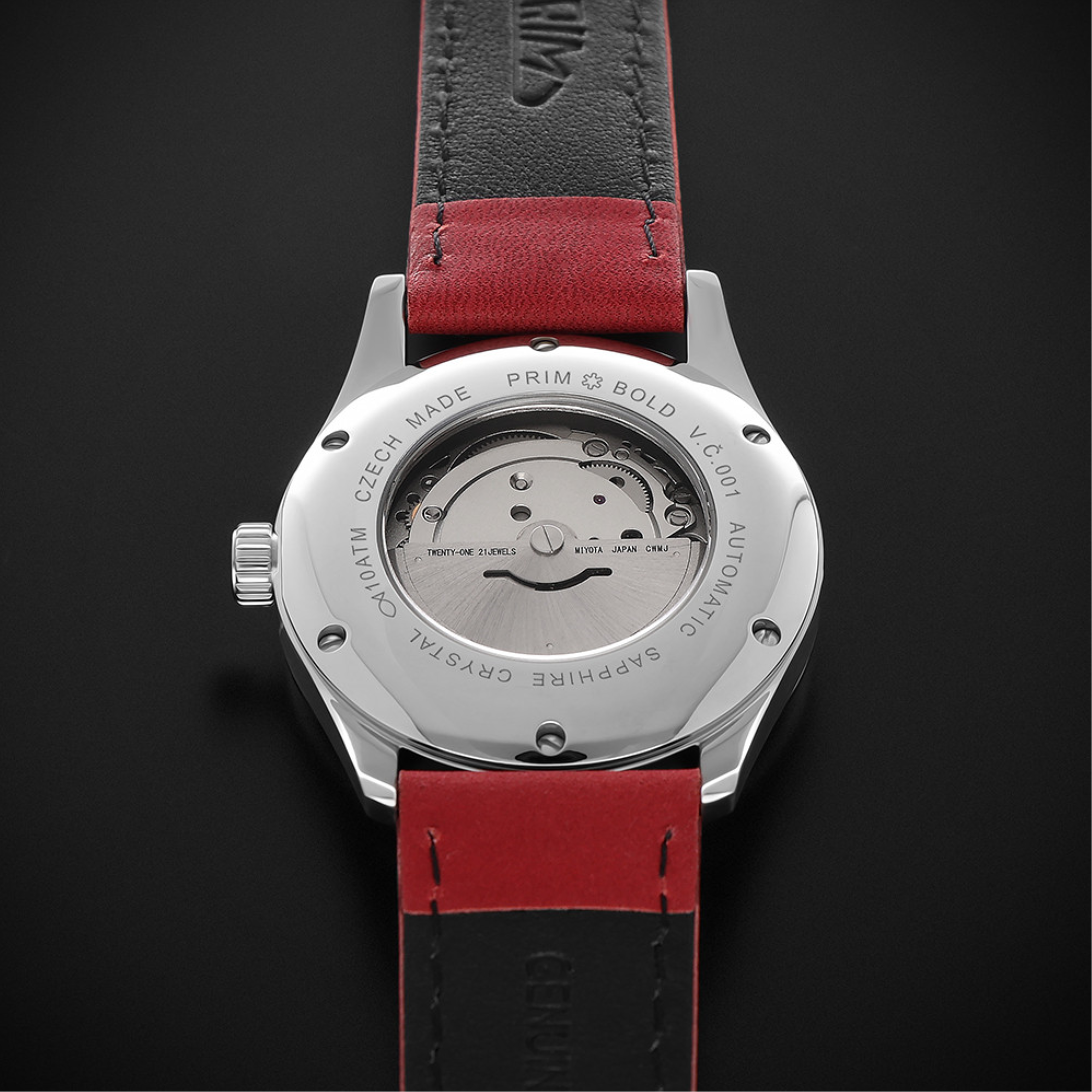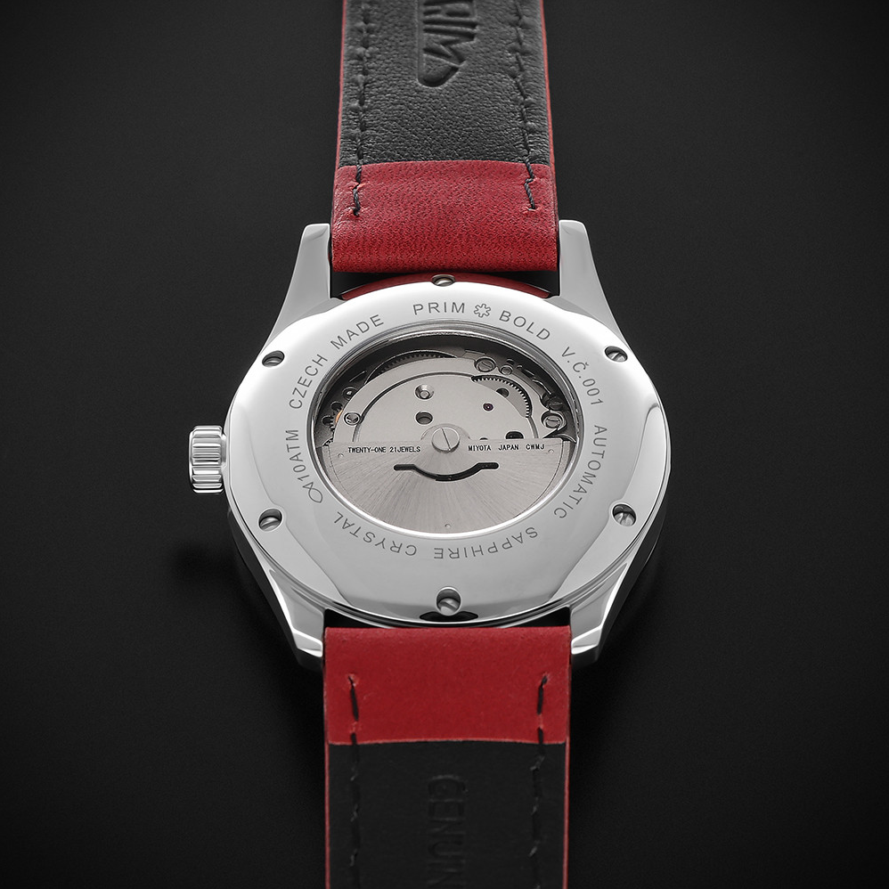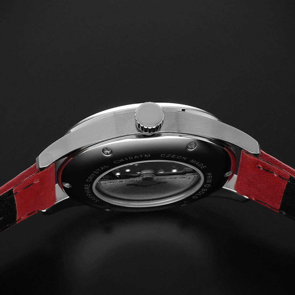 • Funkce a popis:Čas, datum, mechanický strojek s automatickým nátahem Japan Miyota 8215 (21 kamenových uložení) = rezerva chodu až 42 hodin, polokmity setrvačky 21.600/h (3 Hz) = přesnost chodu (diference) 4 - 7 vteřin denně, automatický nátah (hodinky se natahují pohybem ruky) + ruční nátah (hodinky lze natáhnout/dotáhnout dle potřeby i ručně korunkou), zapínání - klasická trnová spona (přezka), průhledné zadní víčko pro náhled na strojek