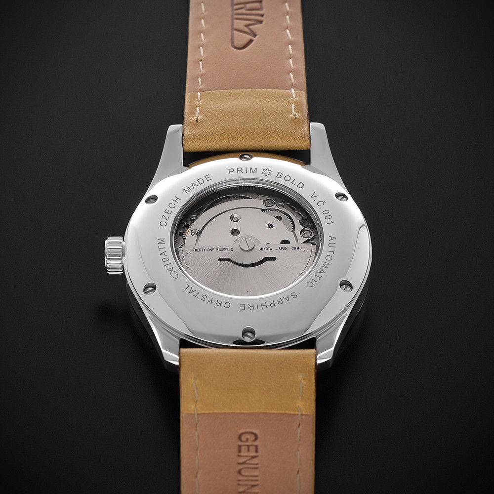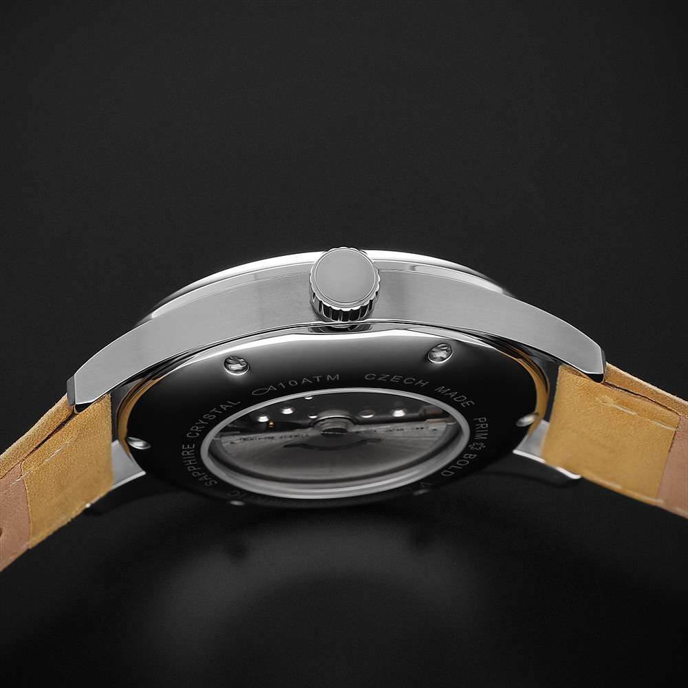 • Funkce a popis:Čas, datum, mechanický strojek s automatickým nátahem Japan Miyota 8215 (21 kamenových uložení) = rezerva chodu až 42 hodin, polokmity setrvačky 21.600/h (3 Hz) = přesnost chodu (diference) 4 - 7 vteřin denně, automatický nátah (hodinky se natahují pohybem ruky) + ruční nátah (hodinky lze natáhnout/dotáhnout dle potřeby i ručně korunkou), zapínání - klasická trnová spona (přezka), průhledné zadní víčko pro náhled na strojek