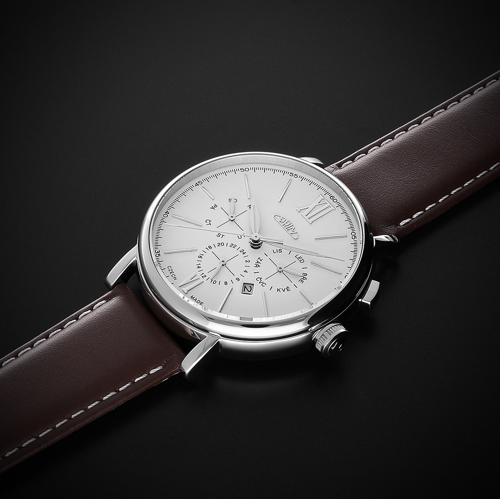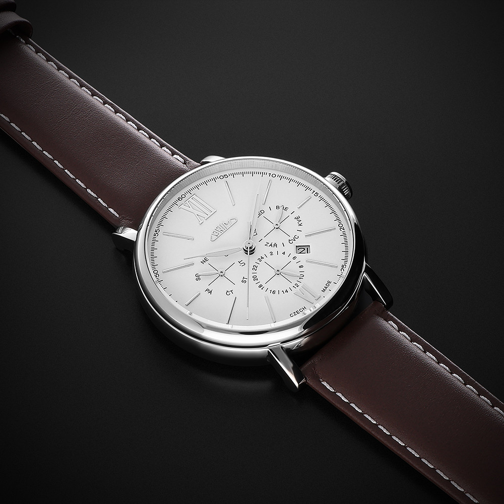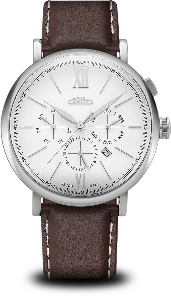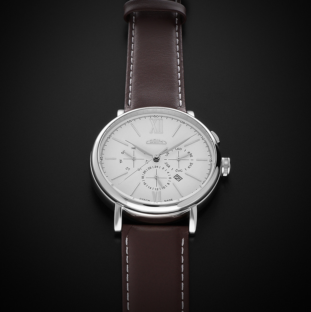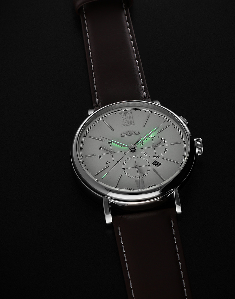 Model PRIM Retro Elegance 2025 se pyšní ocelovým pouzdrem o průměru 45 mm ...