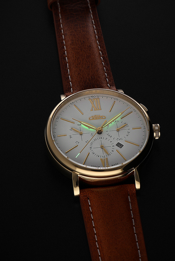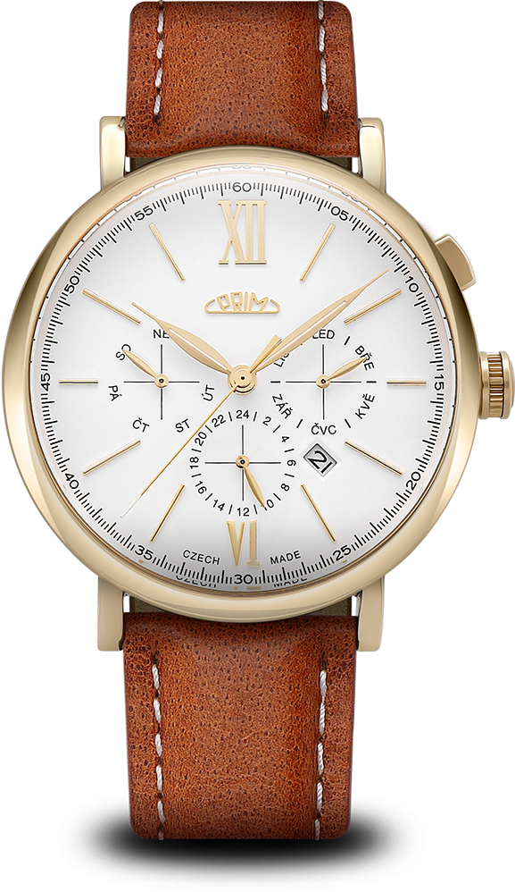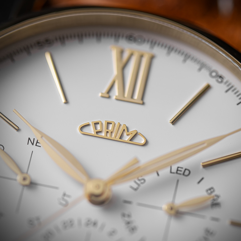 Model PRIM Retro Elegance 2025 se pyšní ocelovým pouzdrem o průměru 45 mm ...